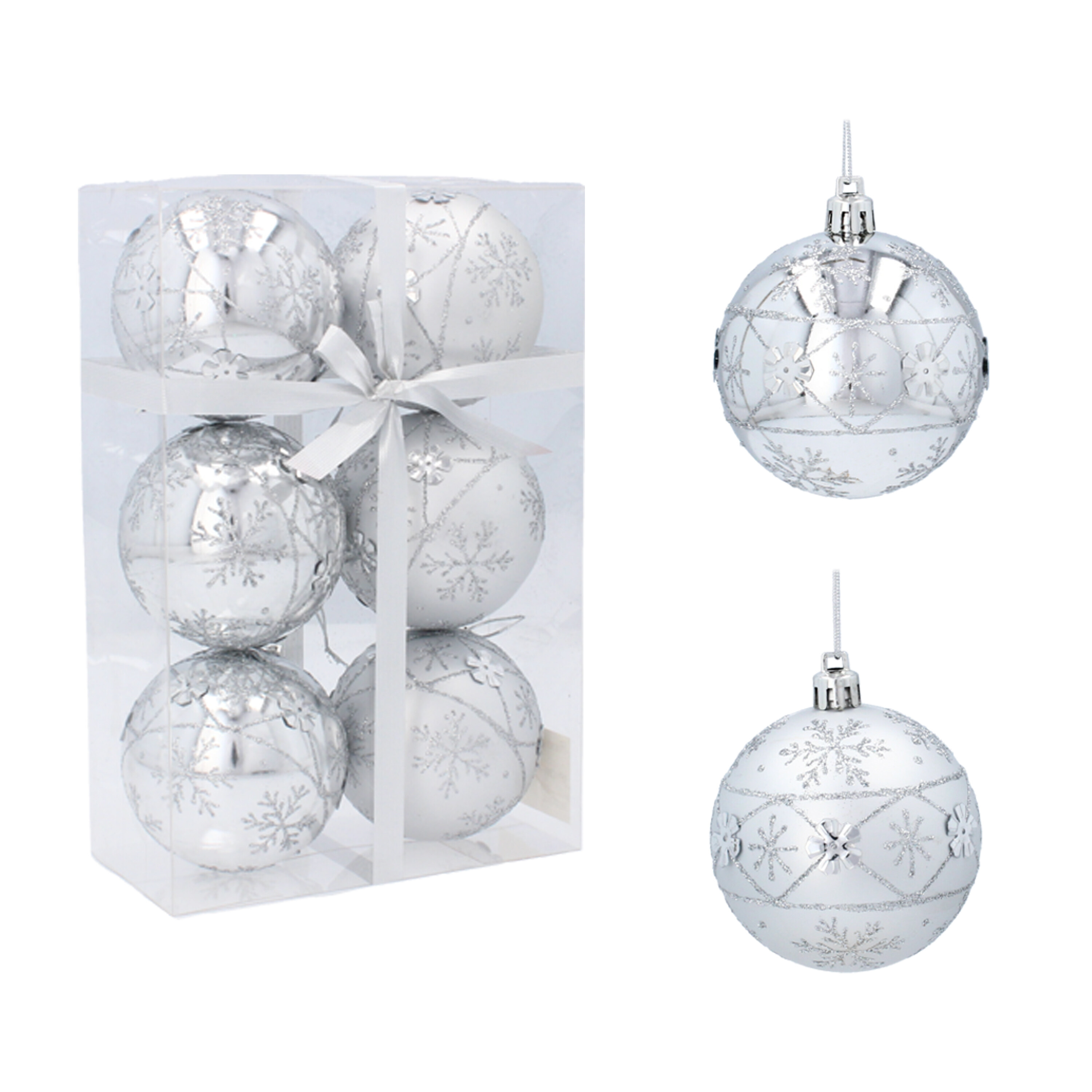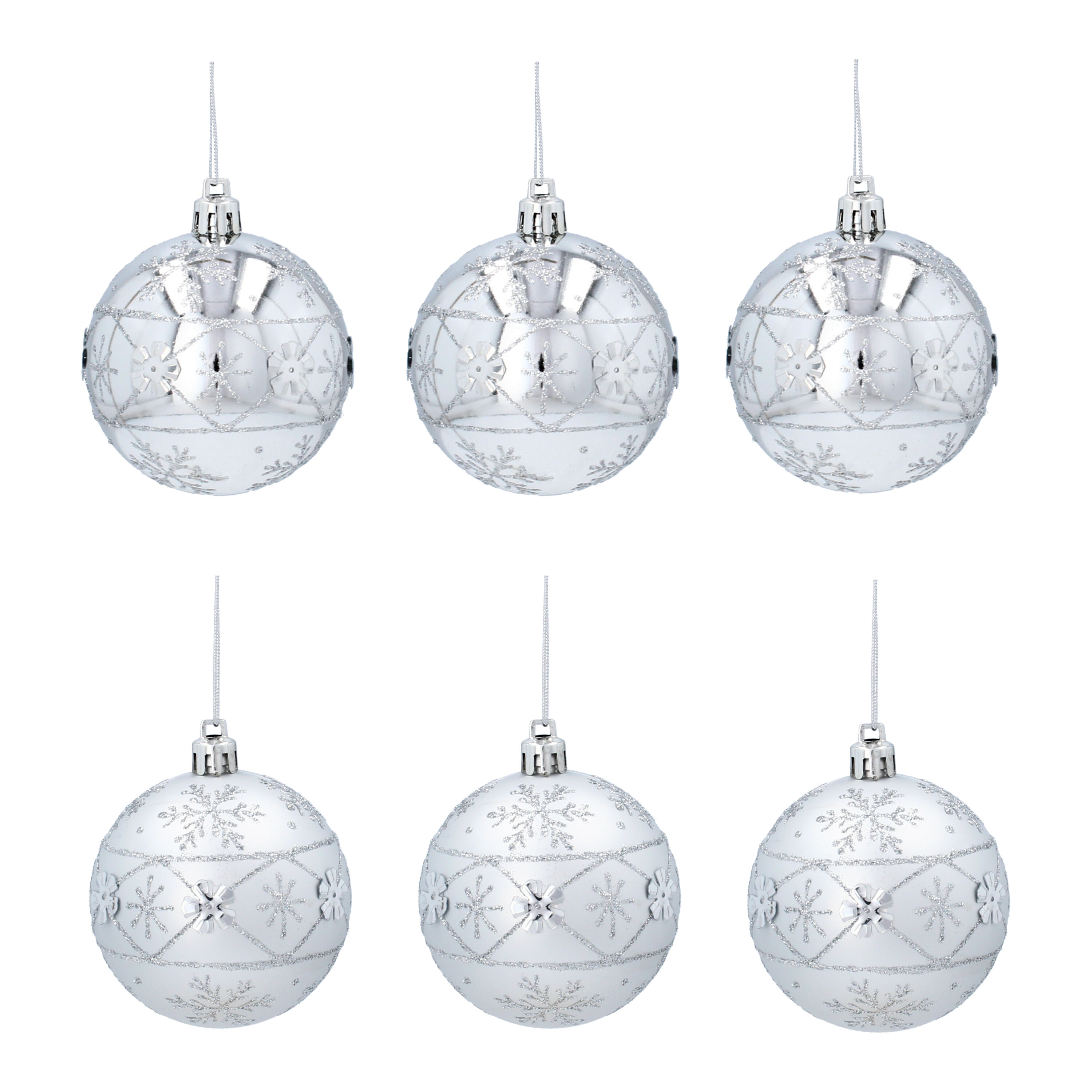 Aga Vánoční baňky 7cm 6ks Stříbrné - Sněhové vločky