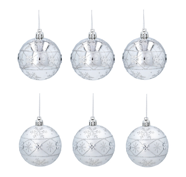 Popis produktu Aga Vánoční baňky 7cm 6ks Stříbrné - Sněhové vločky