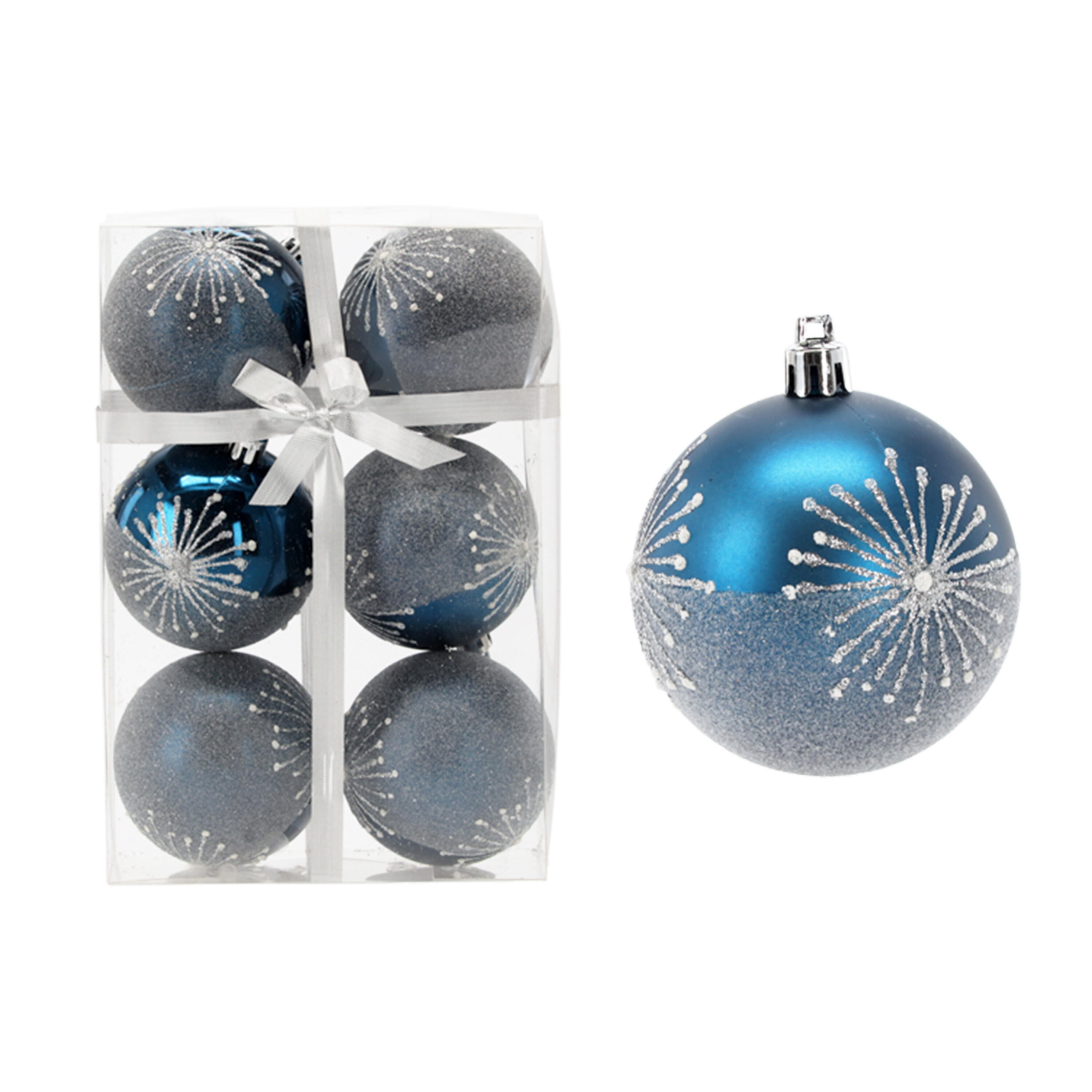 Aga Vánoční baňky 7cm 6ks Modré - Sněhové vločky
