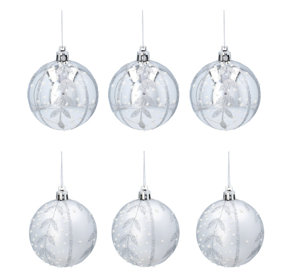 Popis produktu Aga Vánoční baňky 7cm 6ks Stříbrné - Lístečky