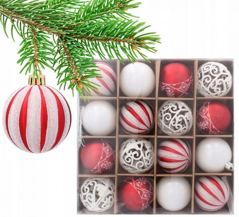 Aga Vánoční baňky MIX 6cm 16ks Červené/Bílé