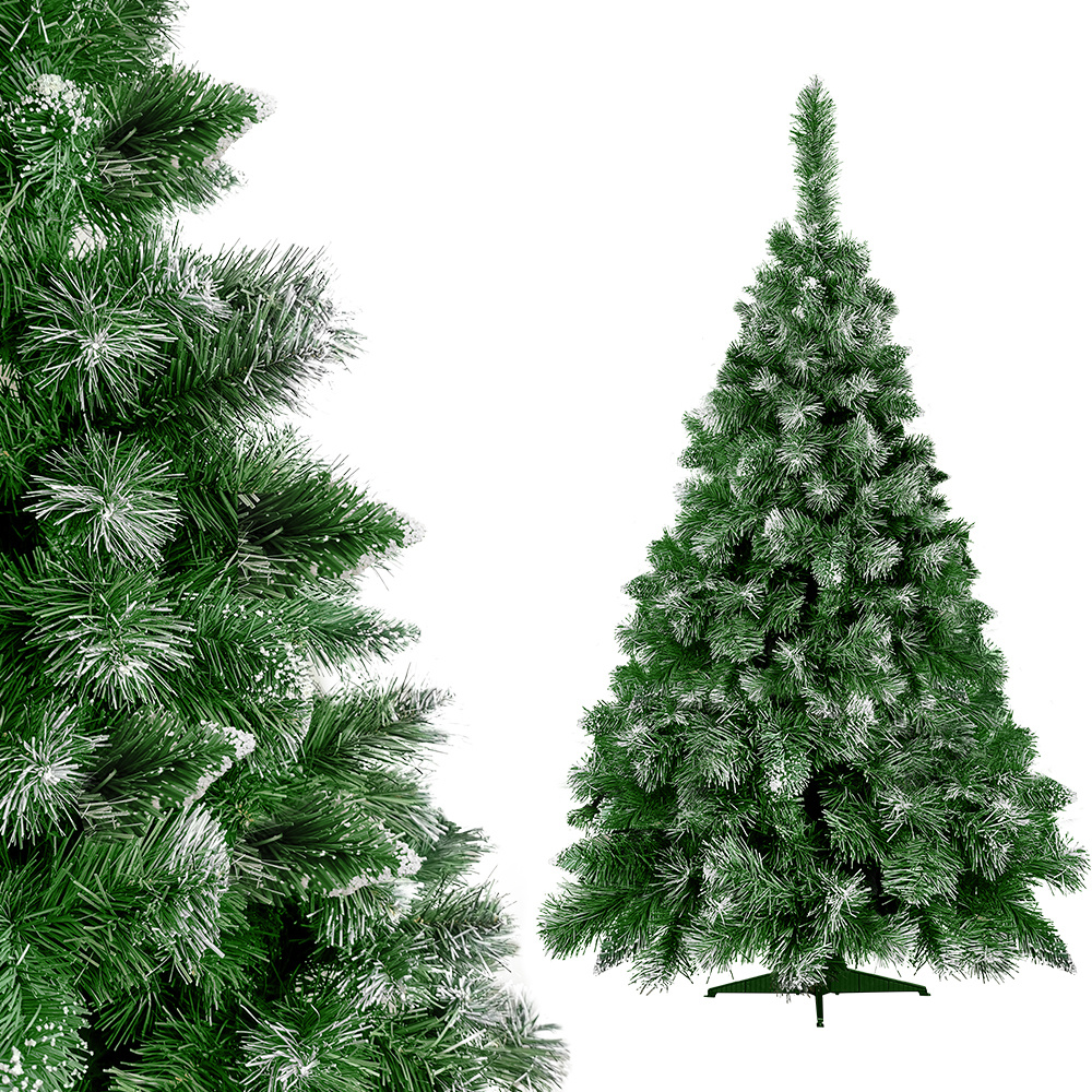 Luxusní umělý vánoční stromeček s celkovou výškou 180 cm v přírodním vzhledu krásné zelené husté jedličky, které je ozdobeno stříbrnými skleněnými třpytkami.