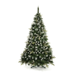 Luxusní umělý vánoční stromeček s celkovou výškou 150 cm v přírodním vzhledu zasněžené zelené husté borovice.