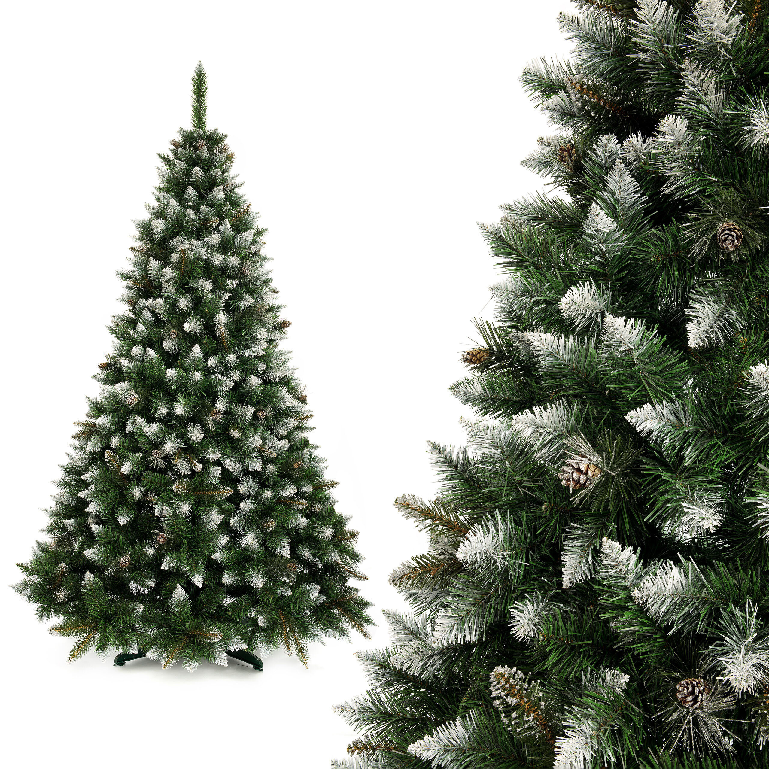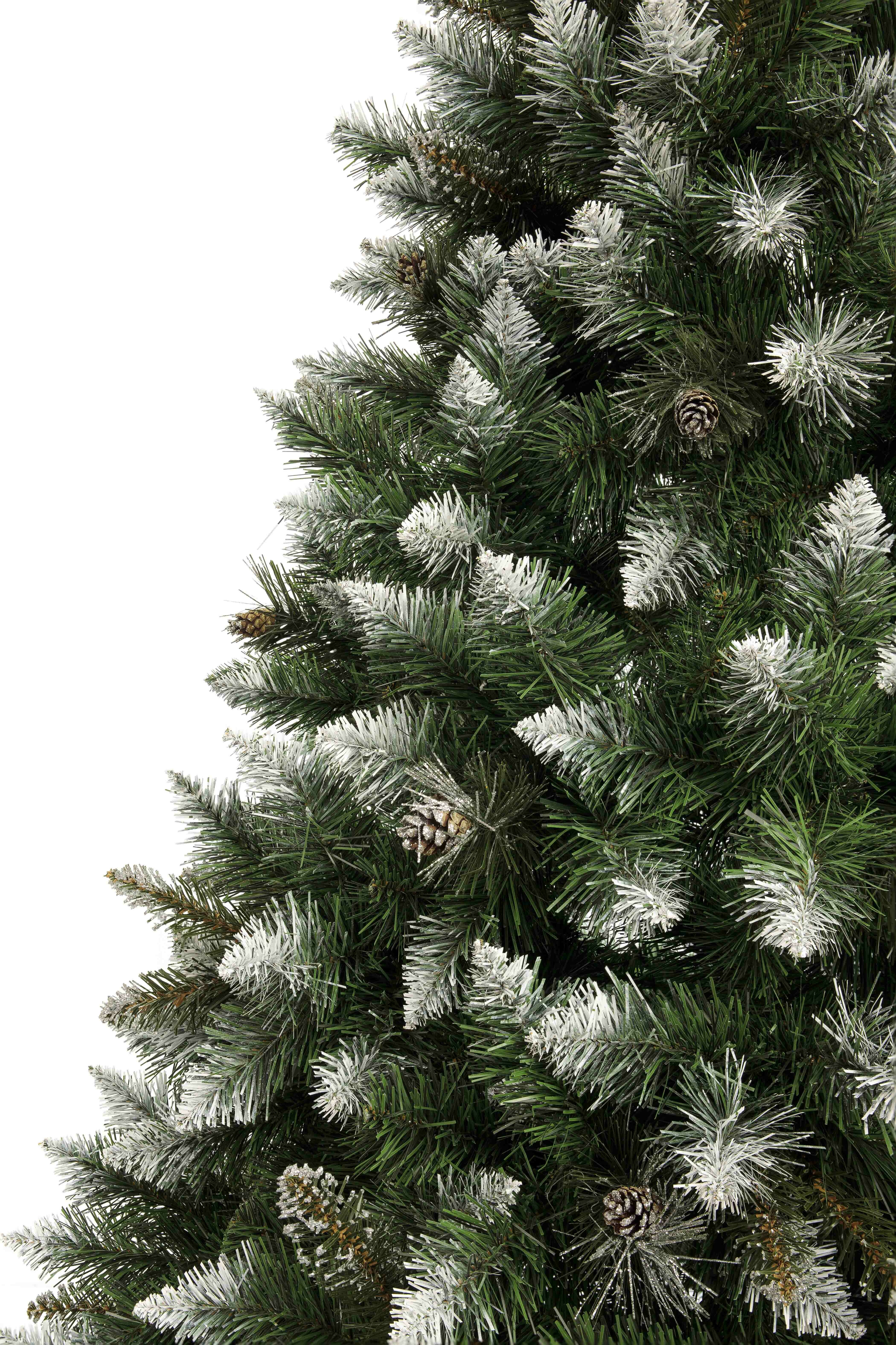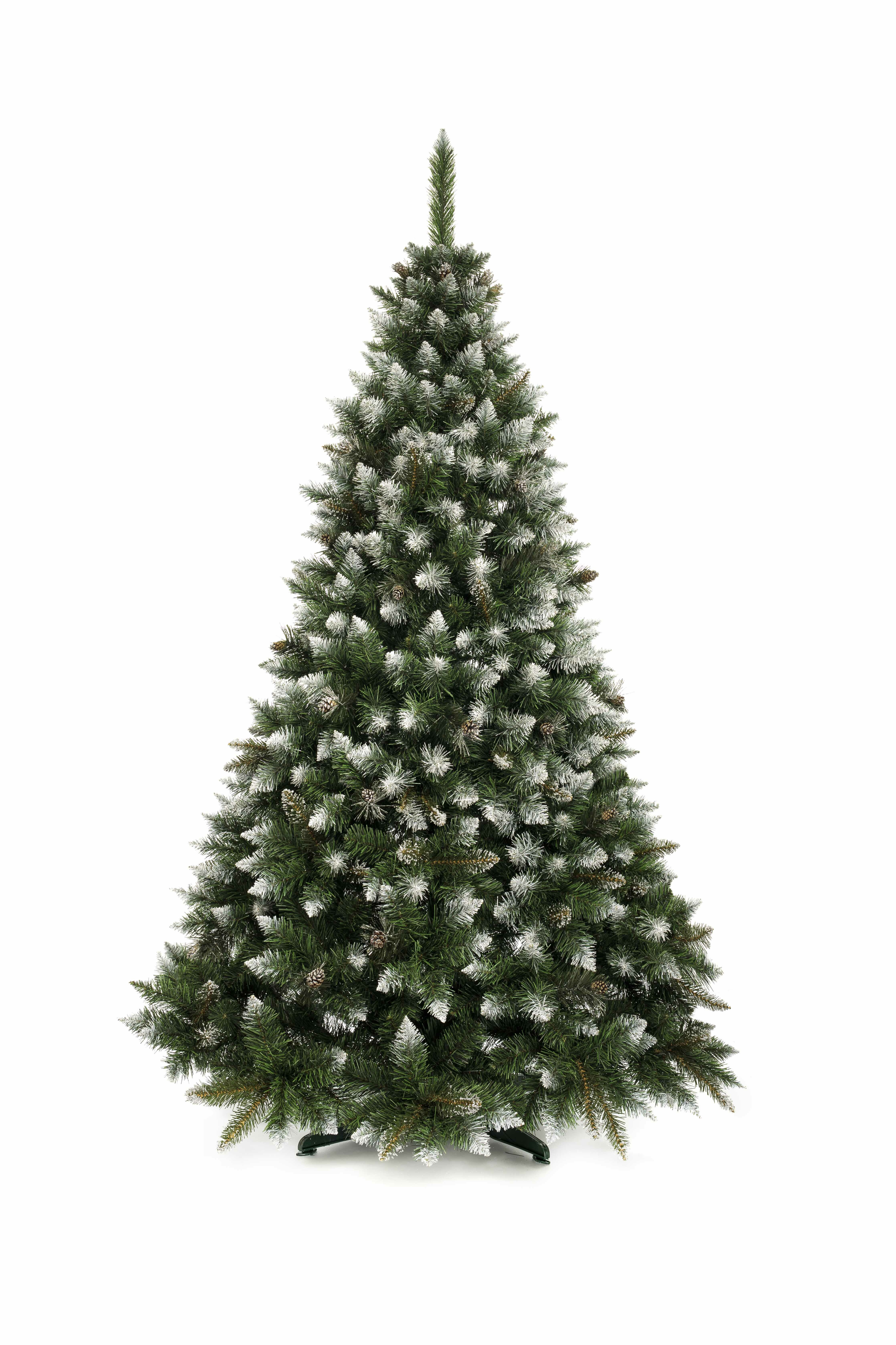 Luxusní umělý vánoční stromeček s celkovou výškou 180 cm v přírodním vzhledu zasněžené zelené husté borovice.