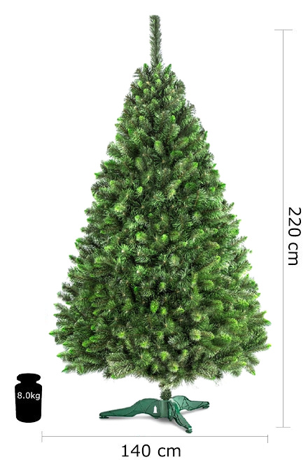 Luxusní umělý vánoční stromeček s celkovou výškou 220 cm v přírodním vzhledu krásného zeleného hustého smrčku.