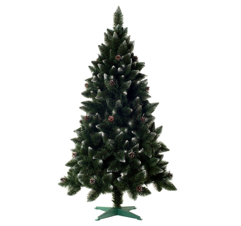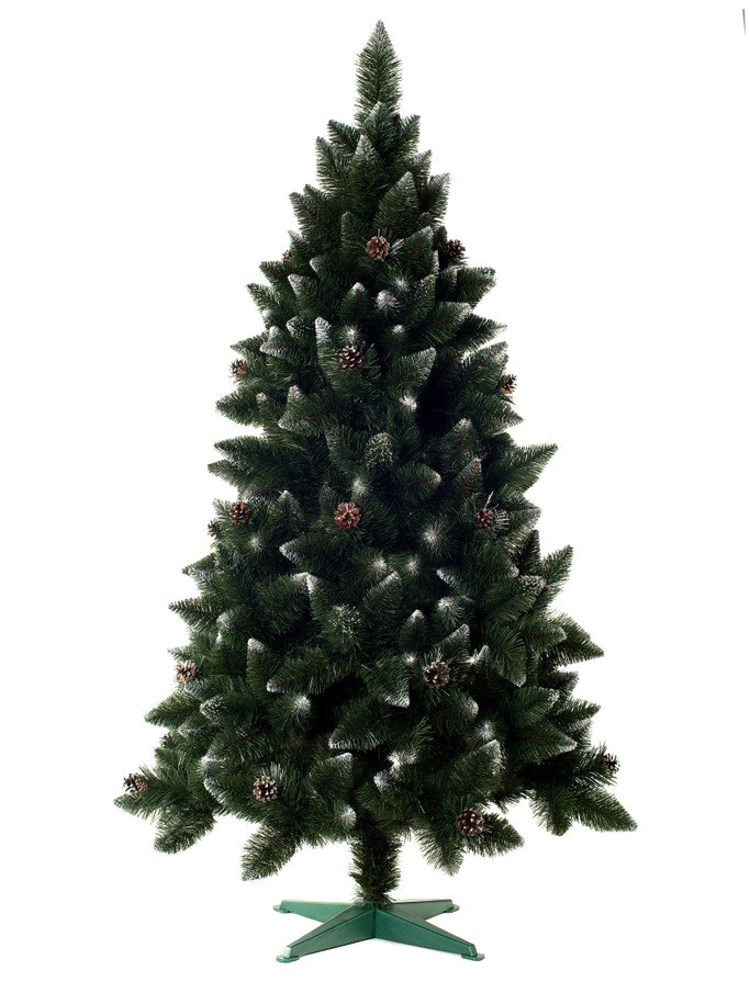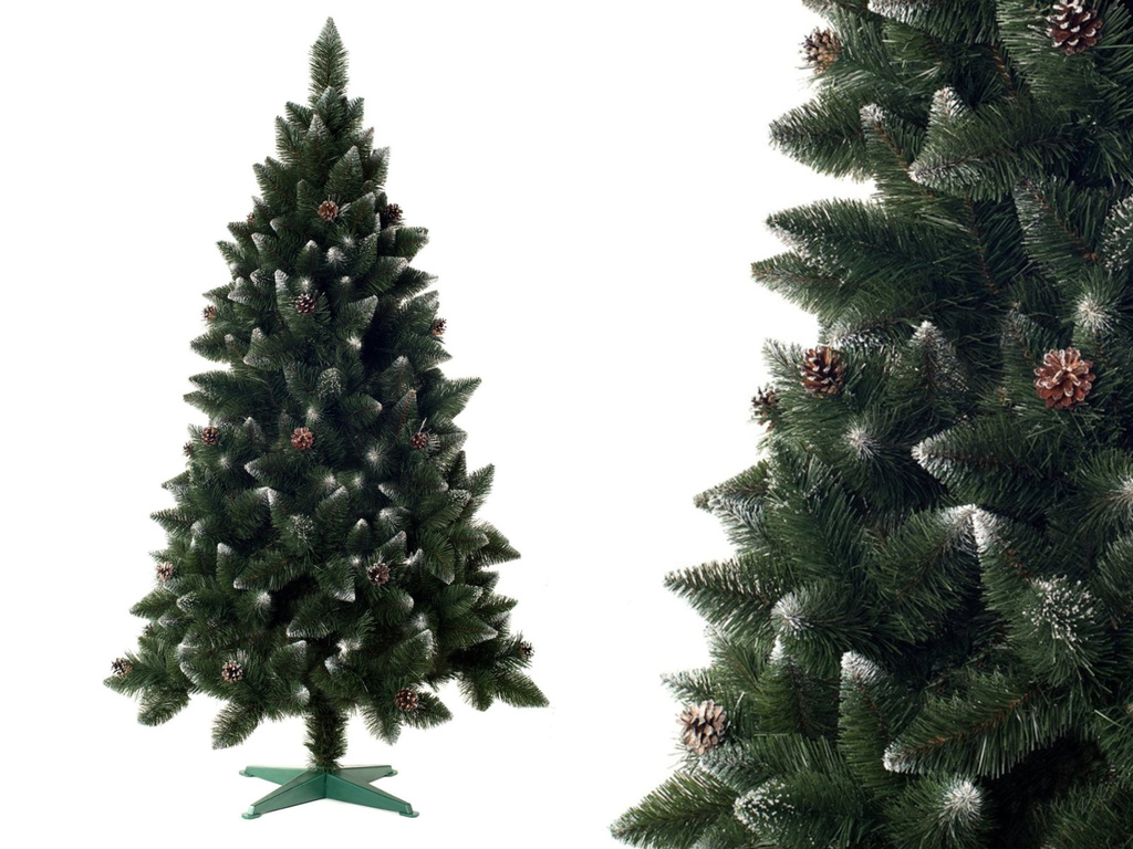 Luxusní umělý vánoční stromeček s šiškami s celkovou výškou 160 cm v přírodním vzhledu krásné zelené husté diamantové borovice.