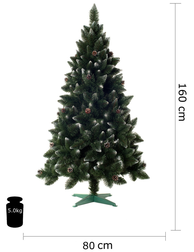 Specifikace umělého vánočního stromečku Aga BOROVICE Diamantová 160 cm + šišky.