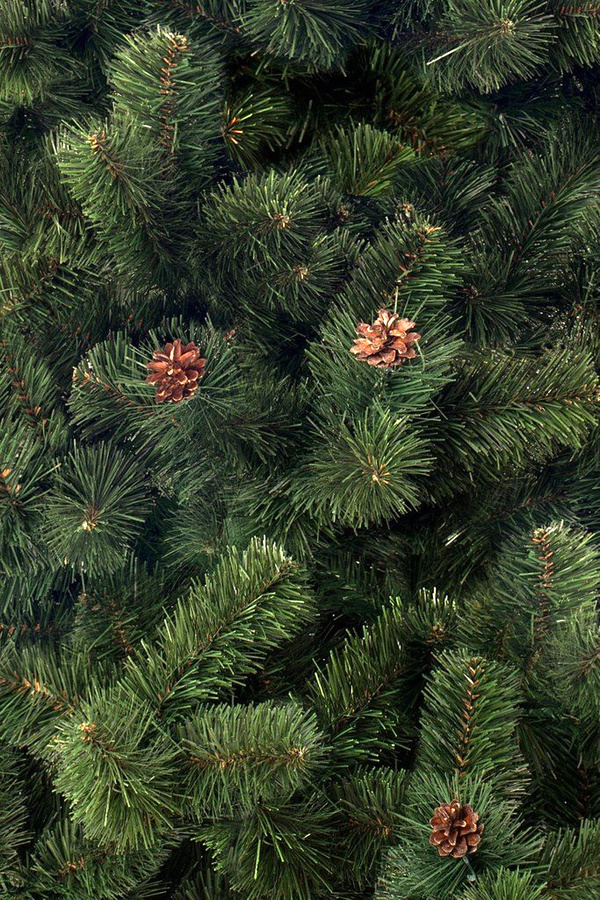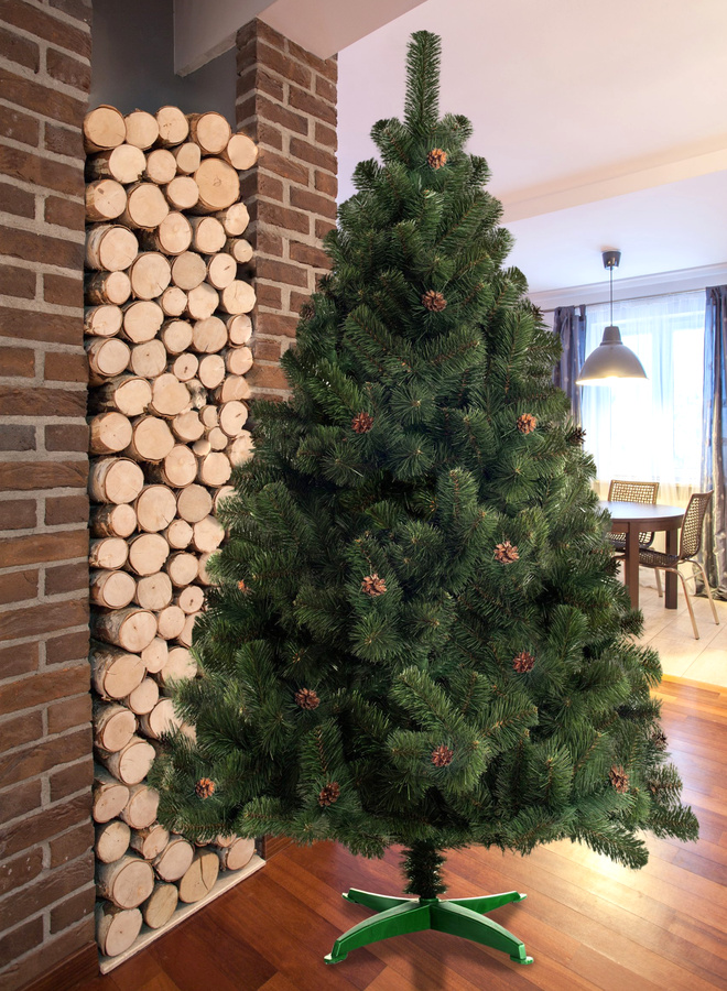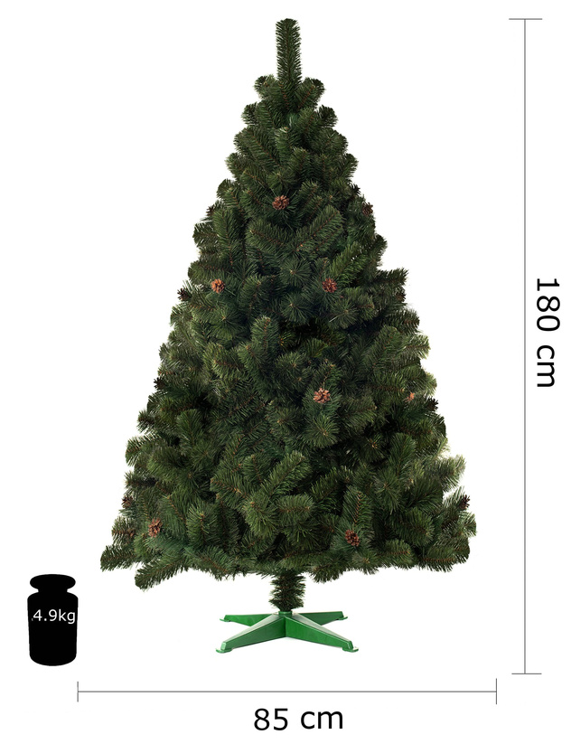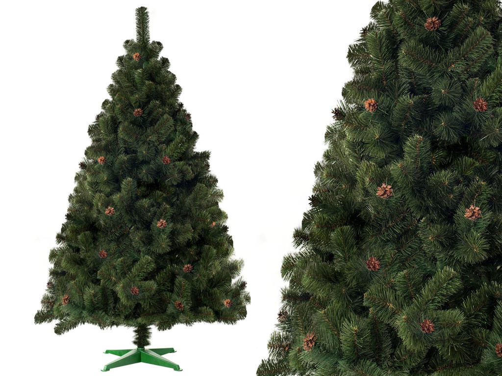 Luxusní umělý vánoční stromeček s šiškami s celkovou výškou 180 cm v přírodním vzhledu krásné zelené husté jedličky.