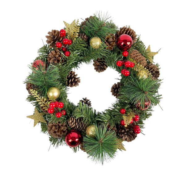 Aga Vánoční věnec 36 cm Červeno-zlatý