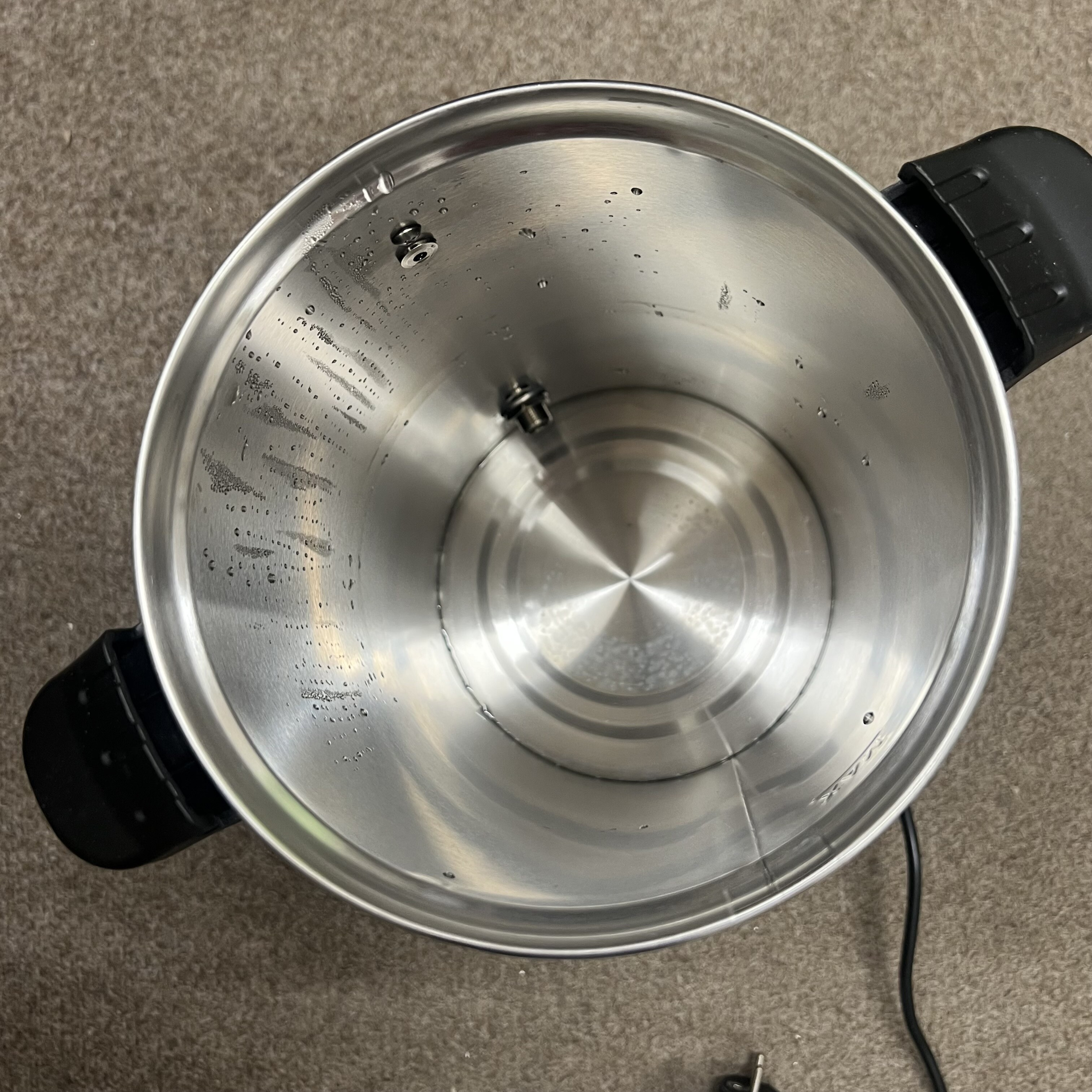 Vařič byl použitý, je mírně znečištěný a má jeden drobný škrábanec. Jinak je plně funkční a připravený k běžnému použití.