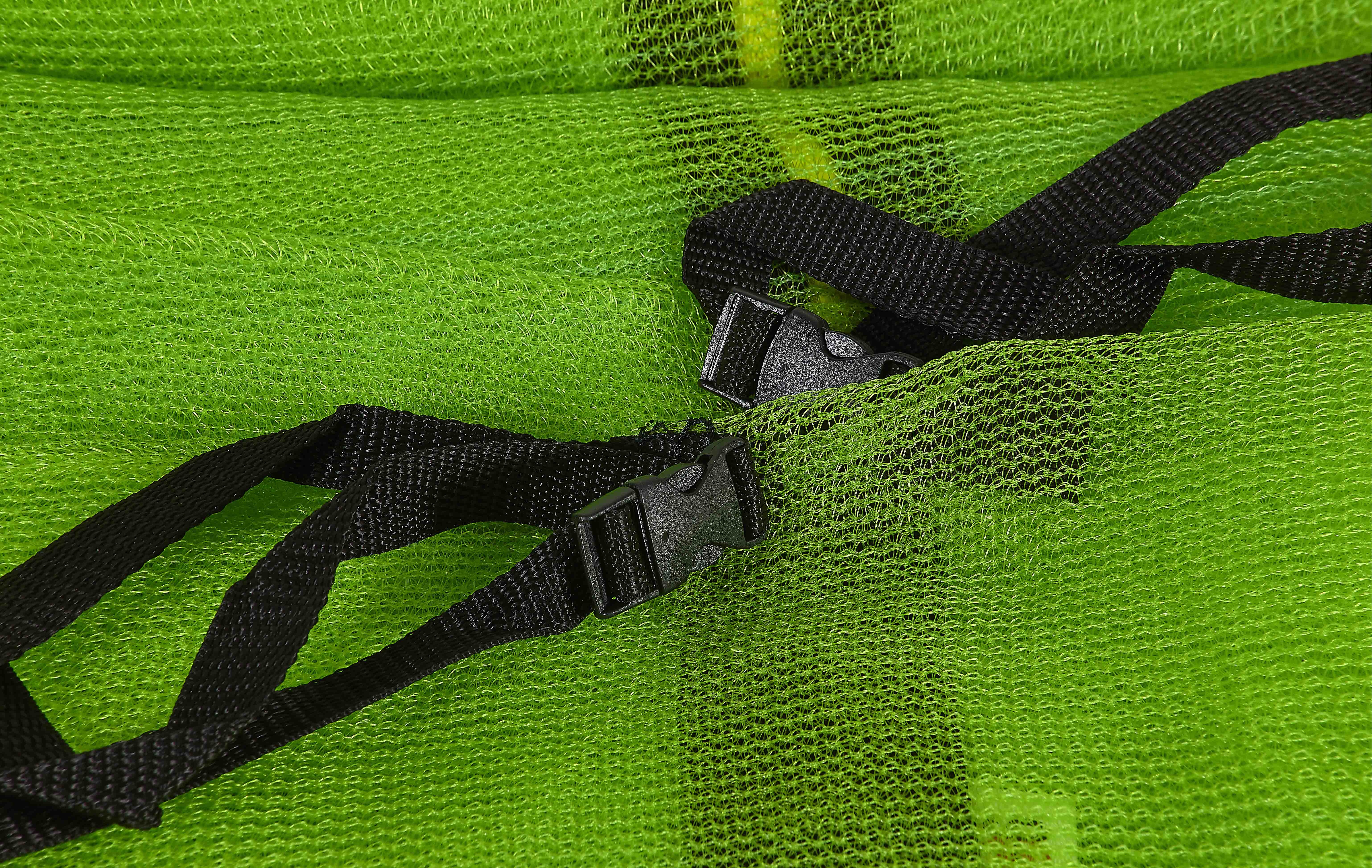 Vstupní otvor sítě je opatřen zipem s bezpečnostní pojistkou proti nechtěnému rozepnutí.
