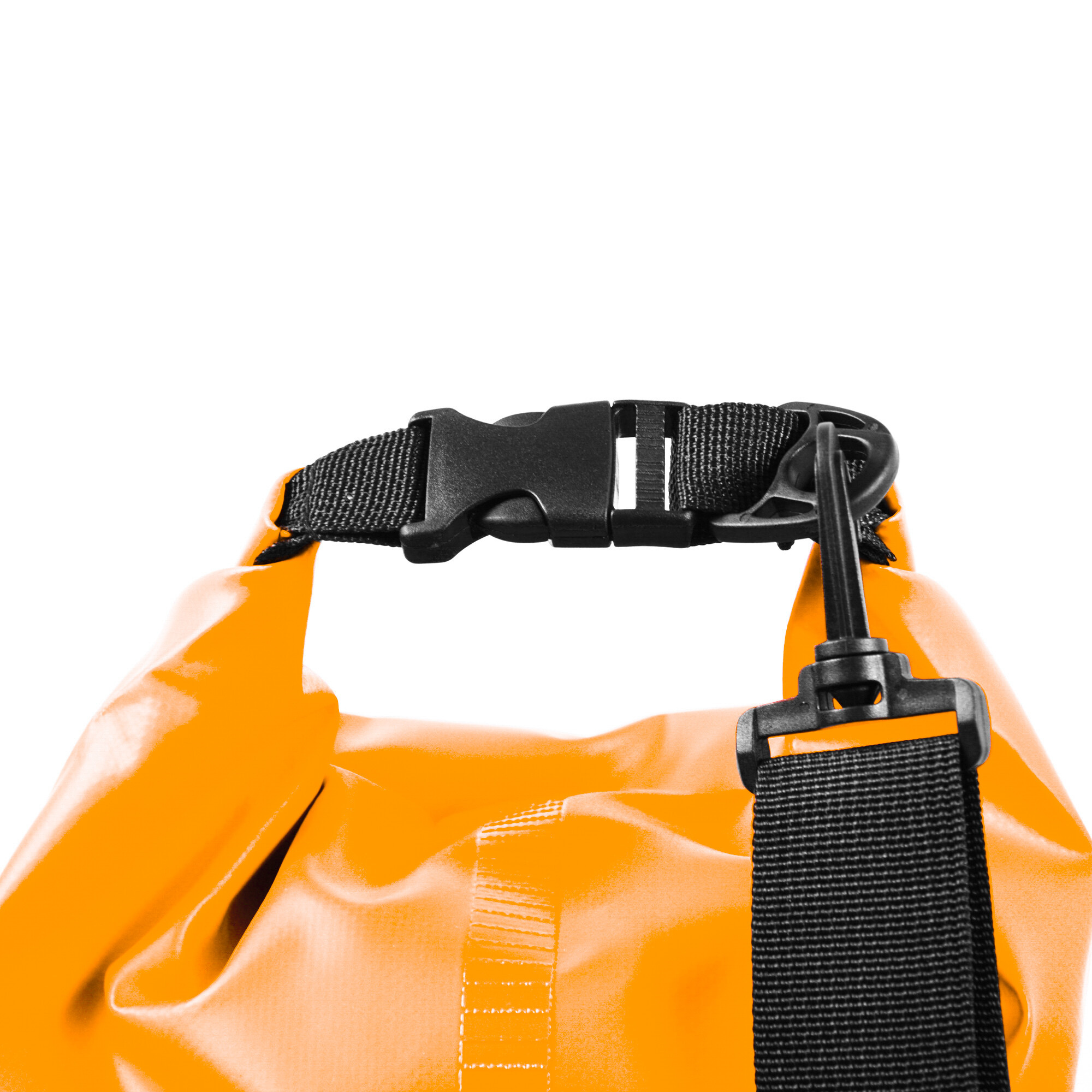 Vodotěsný vak je vybavený ramenními popruhem, jehož délku lze nastavit podle potřeby a zaručí tak pohodlné nošení. Snadné a rychle otevření a uzavření vaku zajišťuje rolovatelná vrchní část, která je zajištěná přezkou.