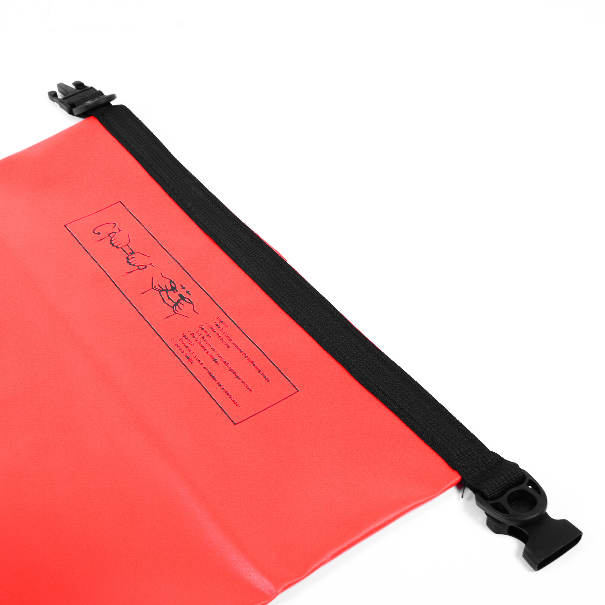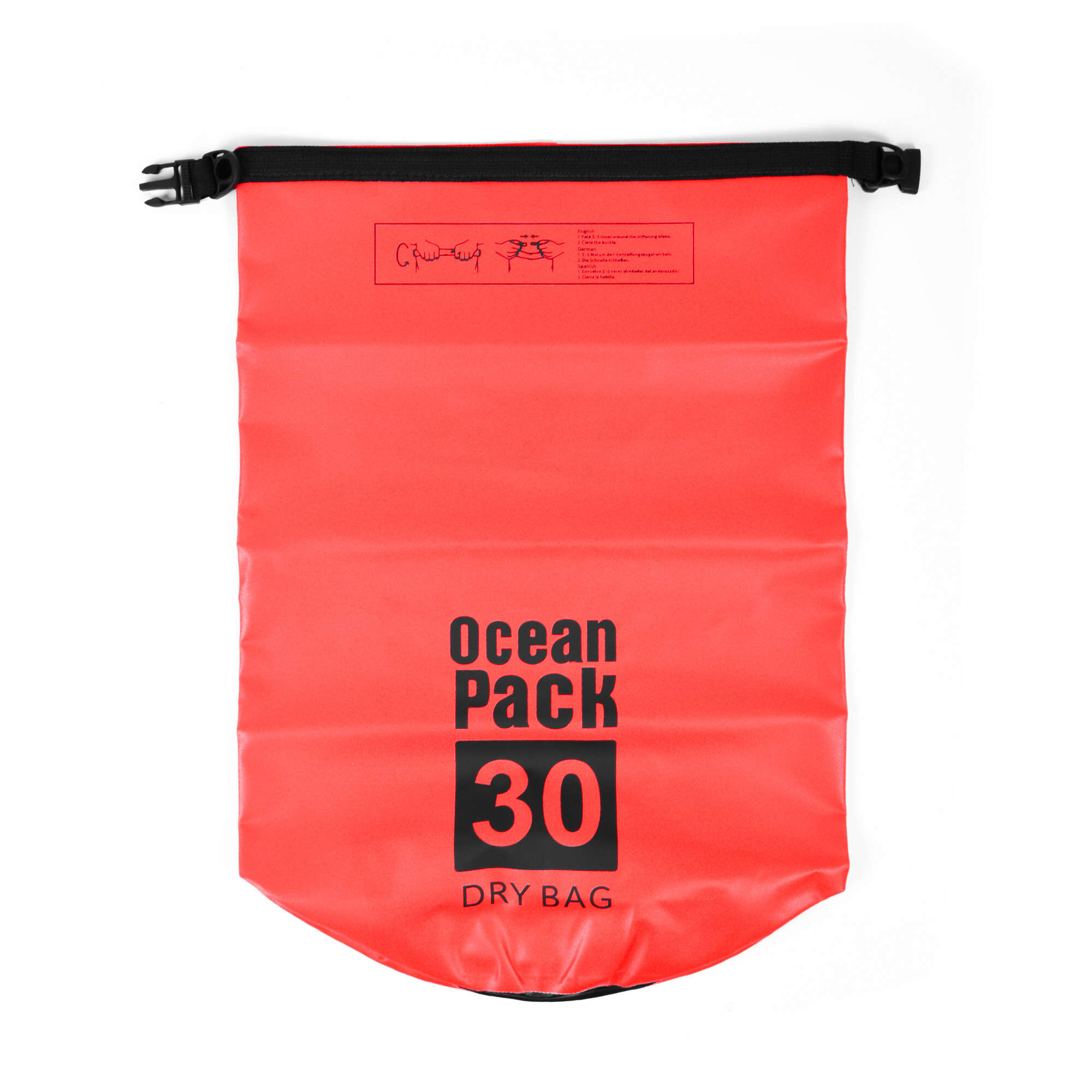 Naplňte vak věcmi tak, aby zůstala aspoň čtvrtina vaku prázdná. Vrchní část přeložte alespoň třikrát až pětkrát směrem dolů, potom oba konce spojte a zacvakněte přezku. Vaše věci tak budou perfektně chráněny proti vodě a vlhkosti, a to například i v případě převrácení lodi.