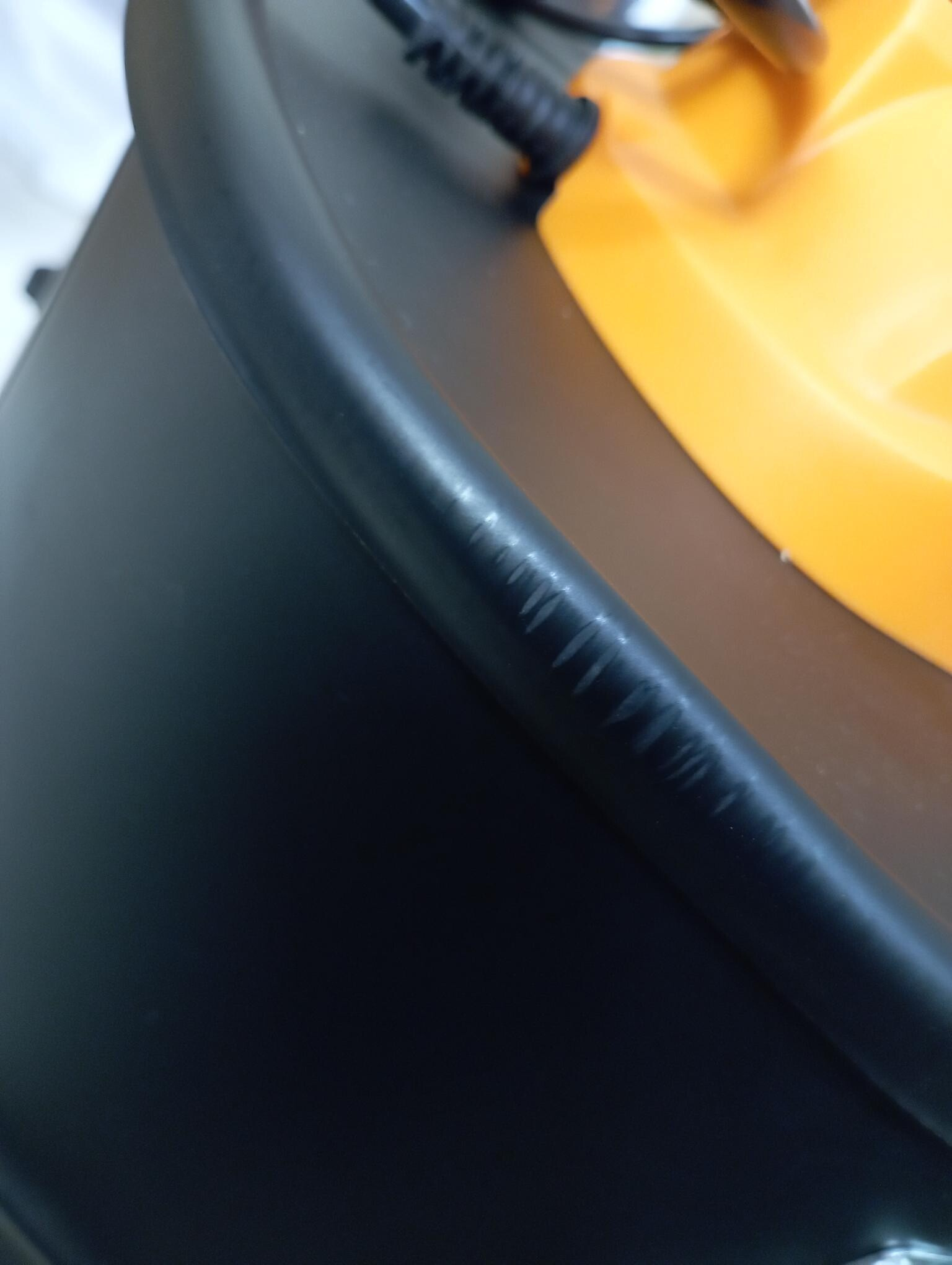 Vysavač je kompletní a plně funkční. Povrch má drobné oděrky a horní poklop má ohnutý okraj, díky čemuž malinko drhne při otevírání a zavírání. Tyto vady jsou čistě kosmetické a nemají vliv na výkon ani použití vysavače.
