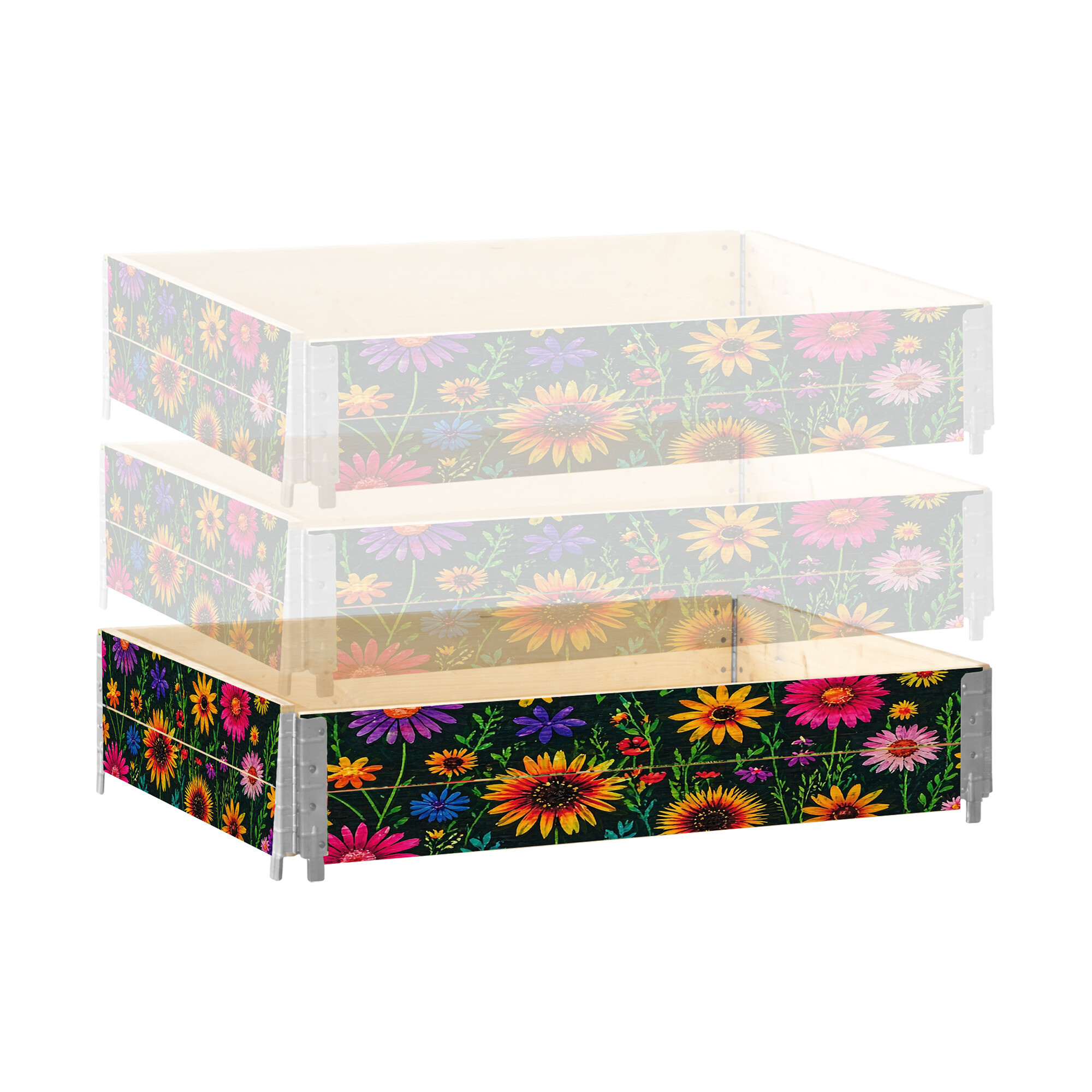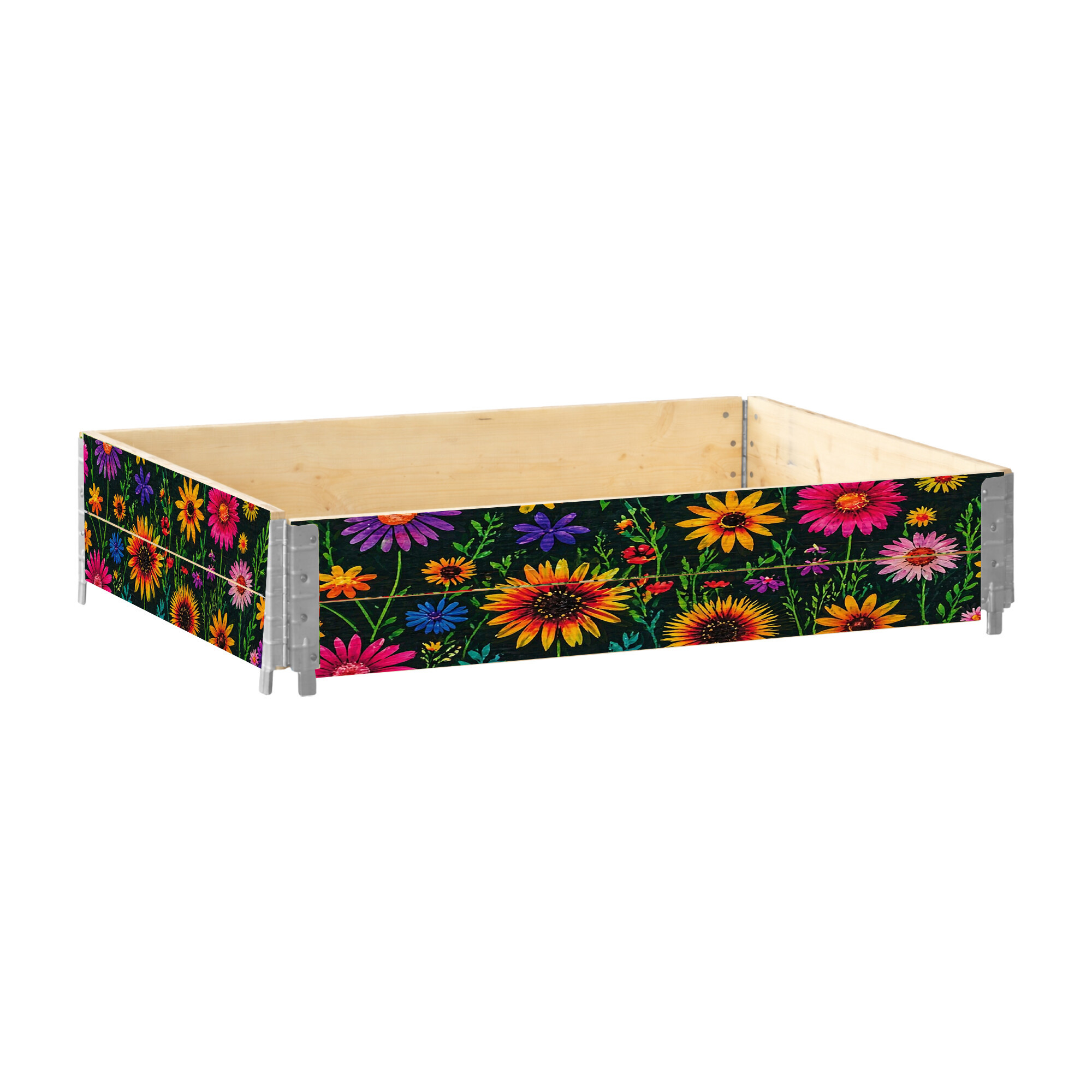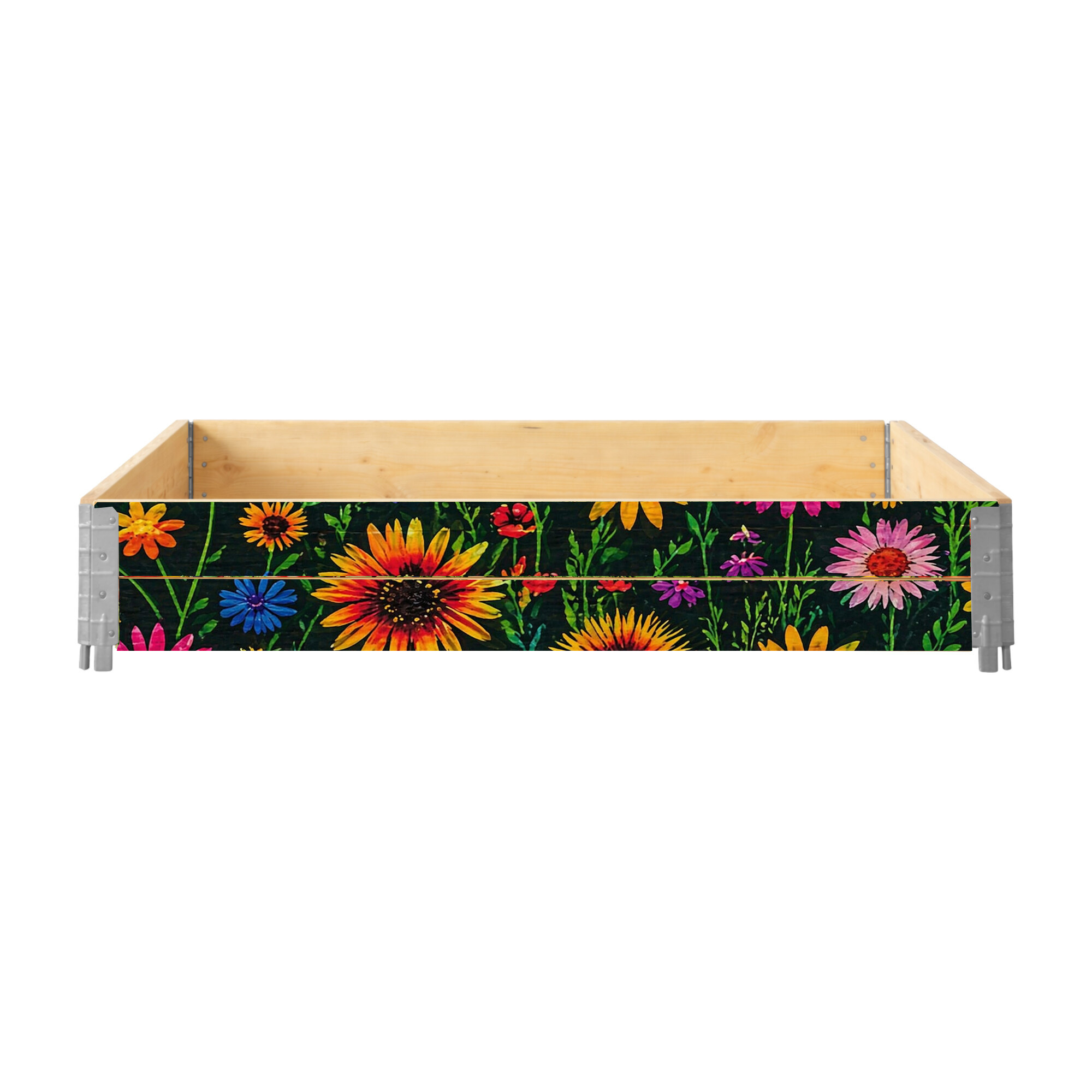 Záhon je vyroben z borovicového dřeva s certifikací IPPC. Vnější strana je doplněna grafikou květin, která zvýrazňuje jeho zahradní vzhled a dobře se hodí do venkovního prostředí. Rozměr 120 × 80 cm nabízí dostatek prostoru pro domácí pěstování běžných druhů zeleniny, bylinek, jahod i květin. Výška 40 cm umožňuje vytvořit vrstvu zeminy vhodnou pro různé typy výsadby.