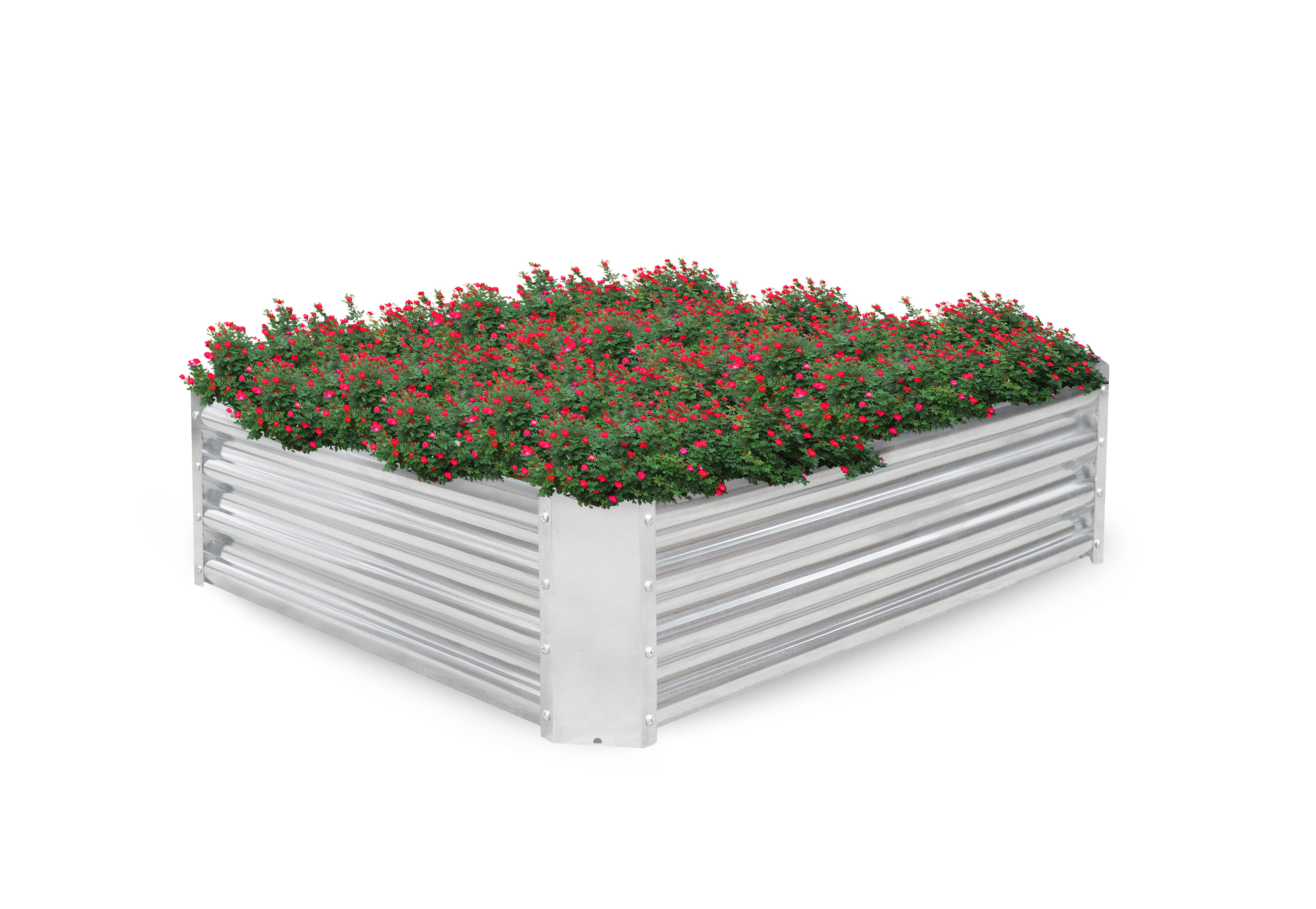 Záhon je zhotovený z odolné pozinkované oceli, výborně tudíž odolává počasí a je vhodný pro venkovní použití.