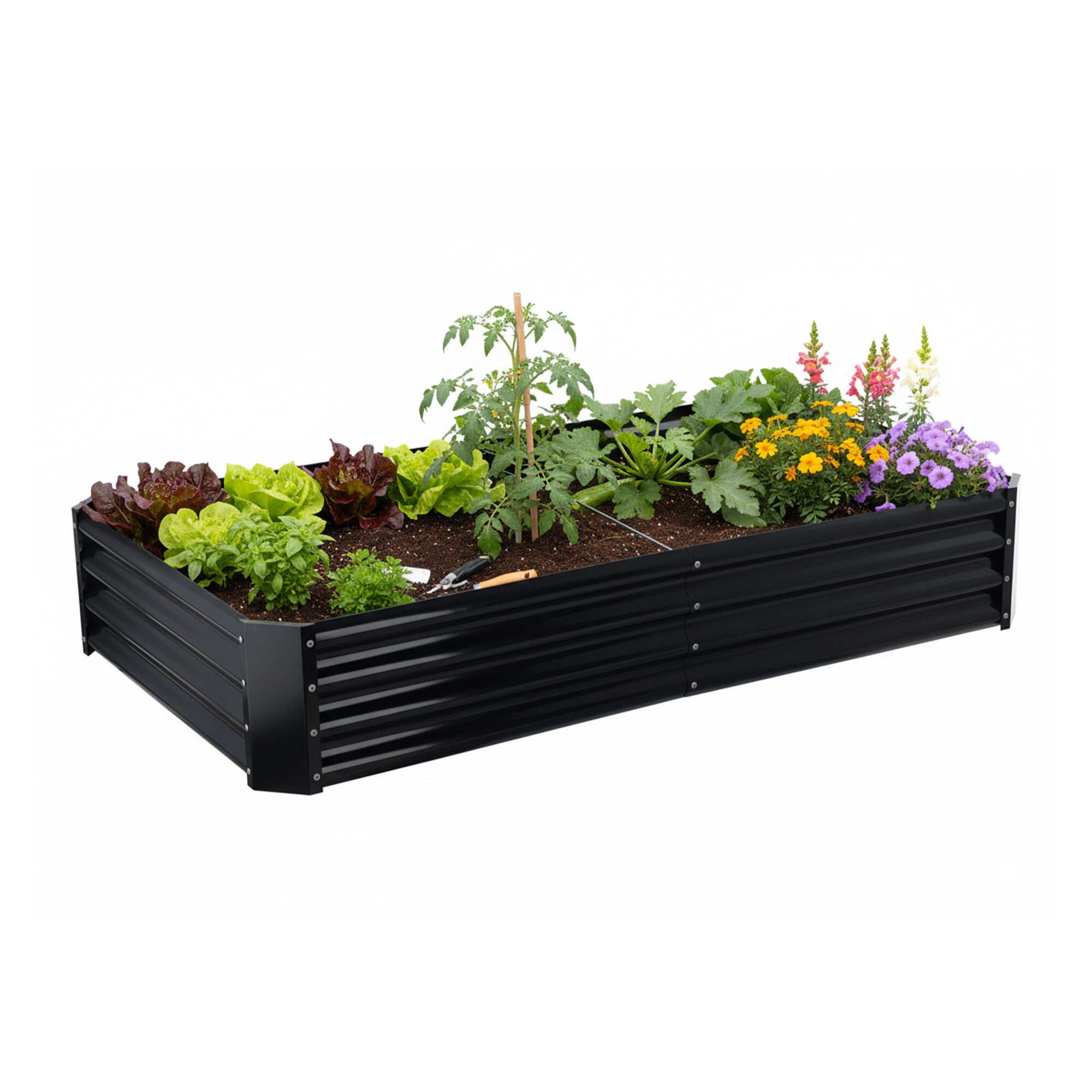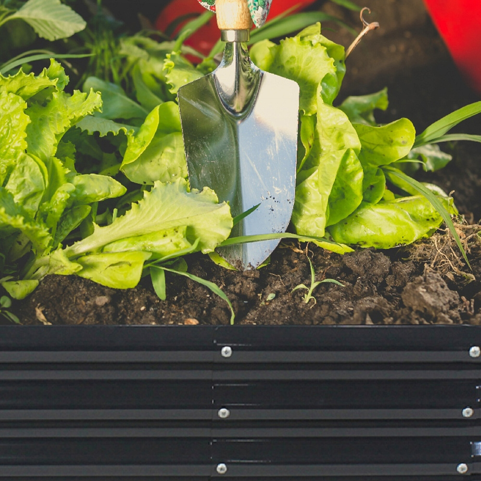 Záhon je zhotovený z odolné pozinkované oceli, výborně tudíž odolává počasí a je vhodný pro venkovní použití.