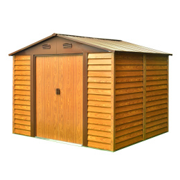 Stěny zahradního domku jsou vyrobeny z kvalitního profilovaného ocelového plechu tloušťky 0,25 mm s barevným nástřikem a konstrukce z galvanizovaného plechu o síle 0,60 mm.