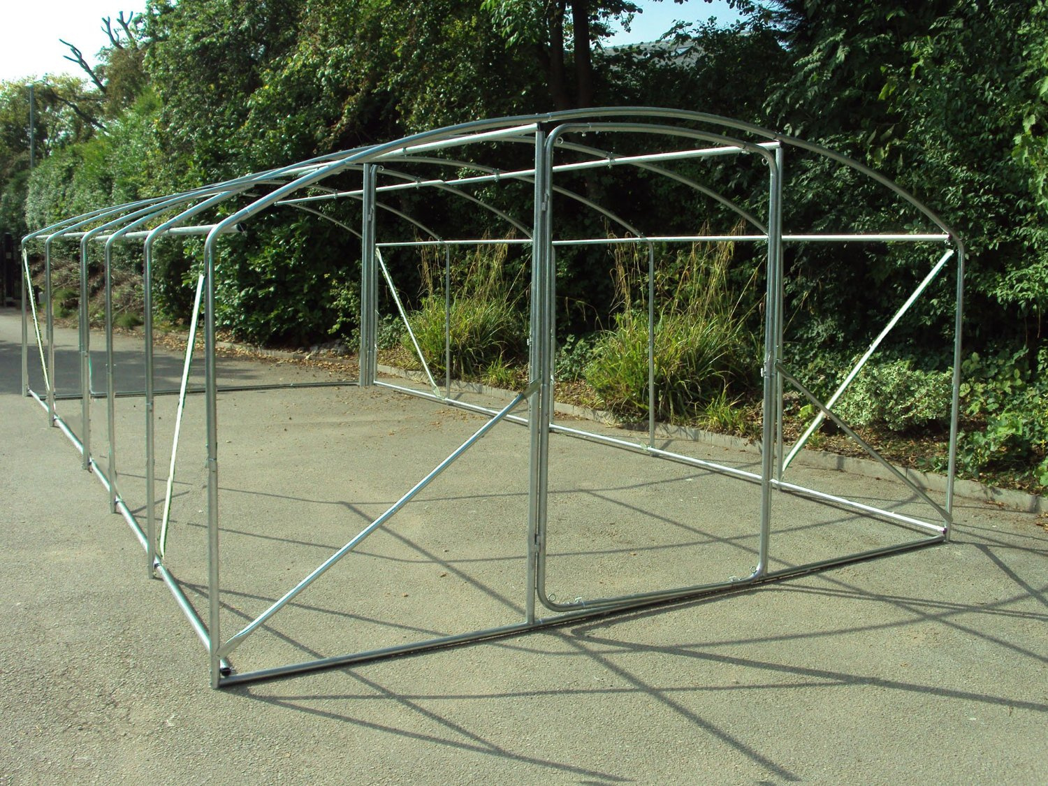 Snadná montáž a možnost sestavení téměř kdekoli na zahradě. Konstrukci tvoří ocelové trubky práškově lakované pro maximální pevnost a dokonalou ochranu proti korozi. Spoje jsou šroubovány což spolehlivě zaručuje tuhost konstrukce.