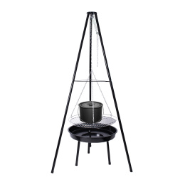 Výškově nastavitelný zahradní gril 3v1 spojuje v jednom řešení ohniště, závěsný rošt a kotlík. Díky chytrému řetězovému systému snadno zvolíte výšku roštu nebo kotlíku podle intenzity ohně maso už nikdy nespálíte a guláš bude chutnat přesně tak, jak má.