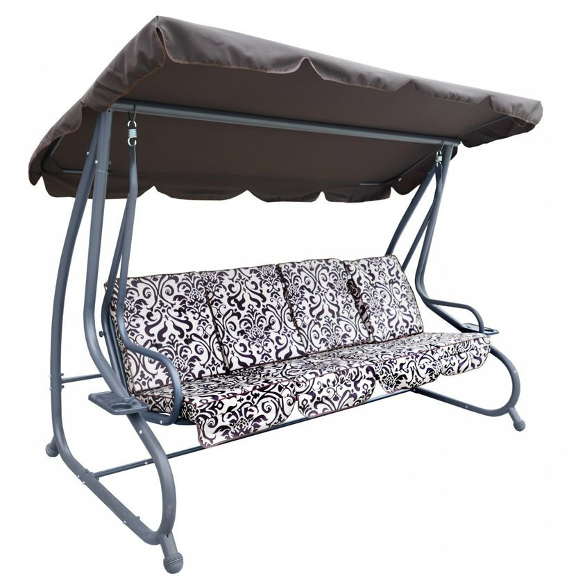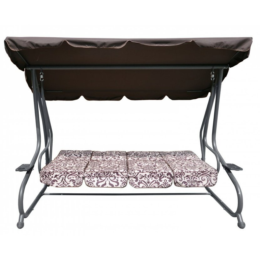 Houpačka je dostatečně prostorná a pohodlná pro 3 až 4 osoby a lze ji velice snadno změnit sklopením opěradla na pohodlné lehátko.