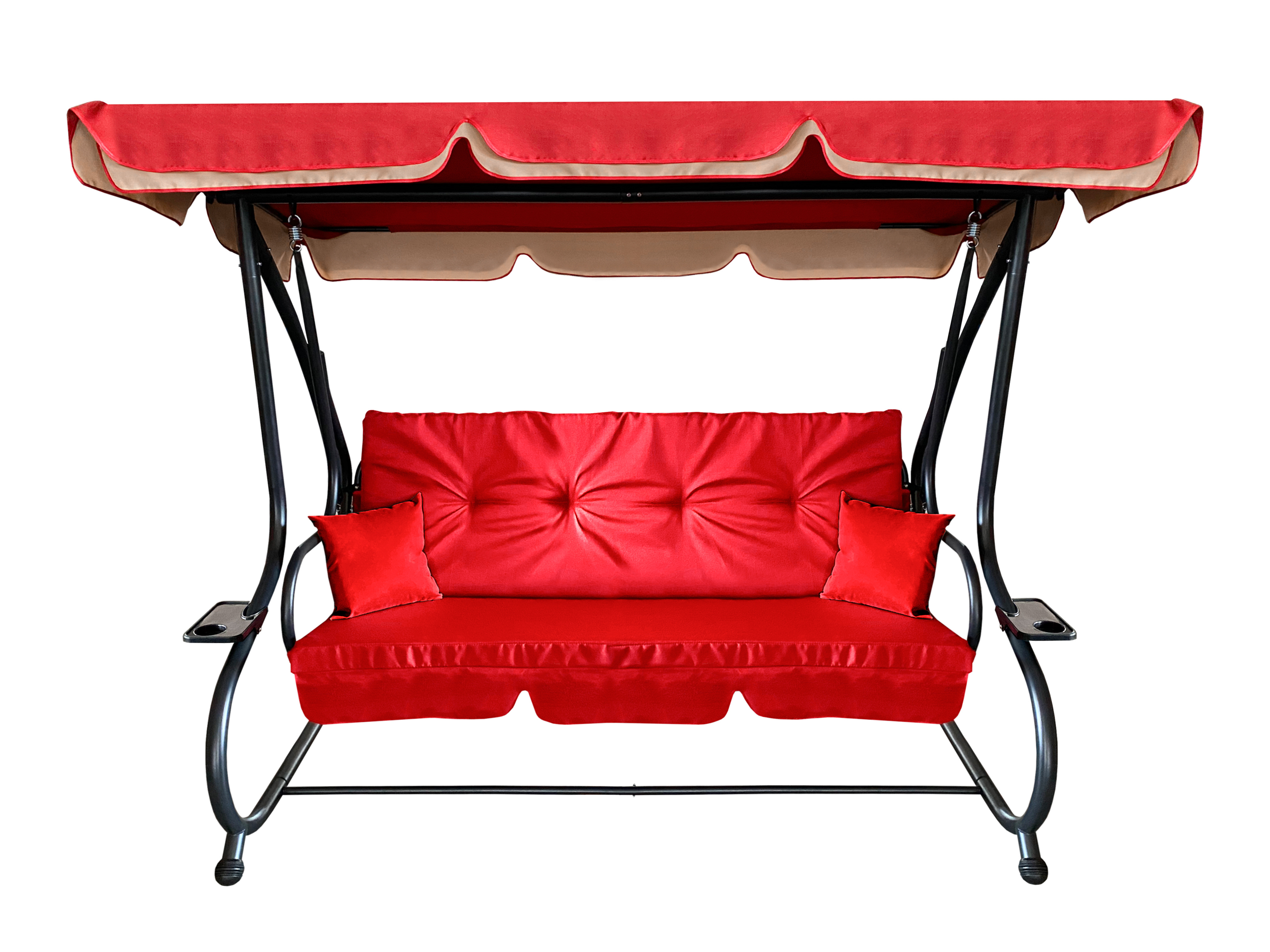 Zahradní houpačka má velmi stabilní ocelovou konstrukci, která je pro lepší odolnost ošetřena práškovým lakováním. Gumové protiskluzové patky na masivních nohách, zaručují potřebnou stabilitu houpačce.