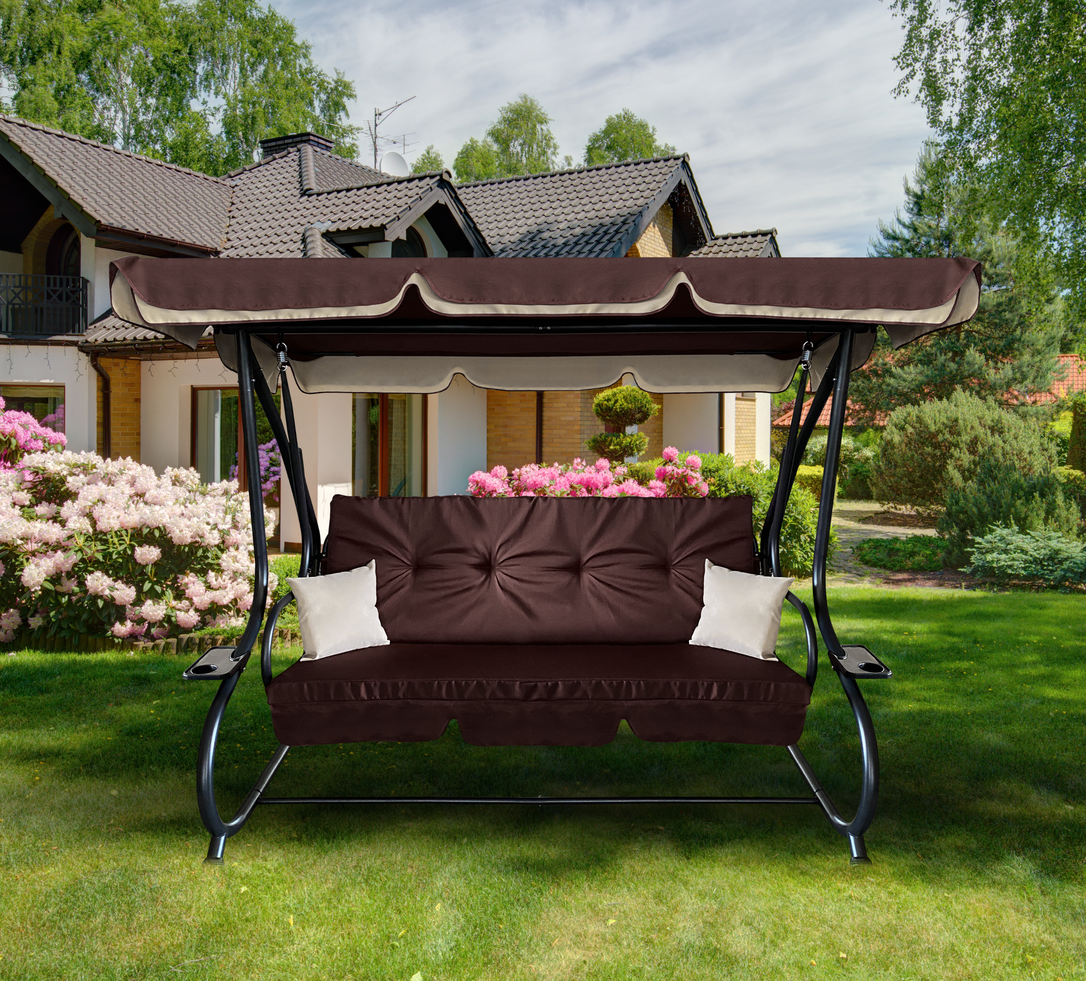 Údržba této houpačky je velmi jednoduchá díky kvalitním materiálům, které jsou odolné vůči povětrnostním vlivům. Polstrování lze snadno čistit a ocelová konstrukce vyžaduje minimální péči.