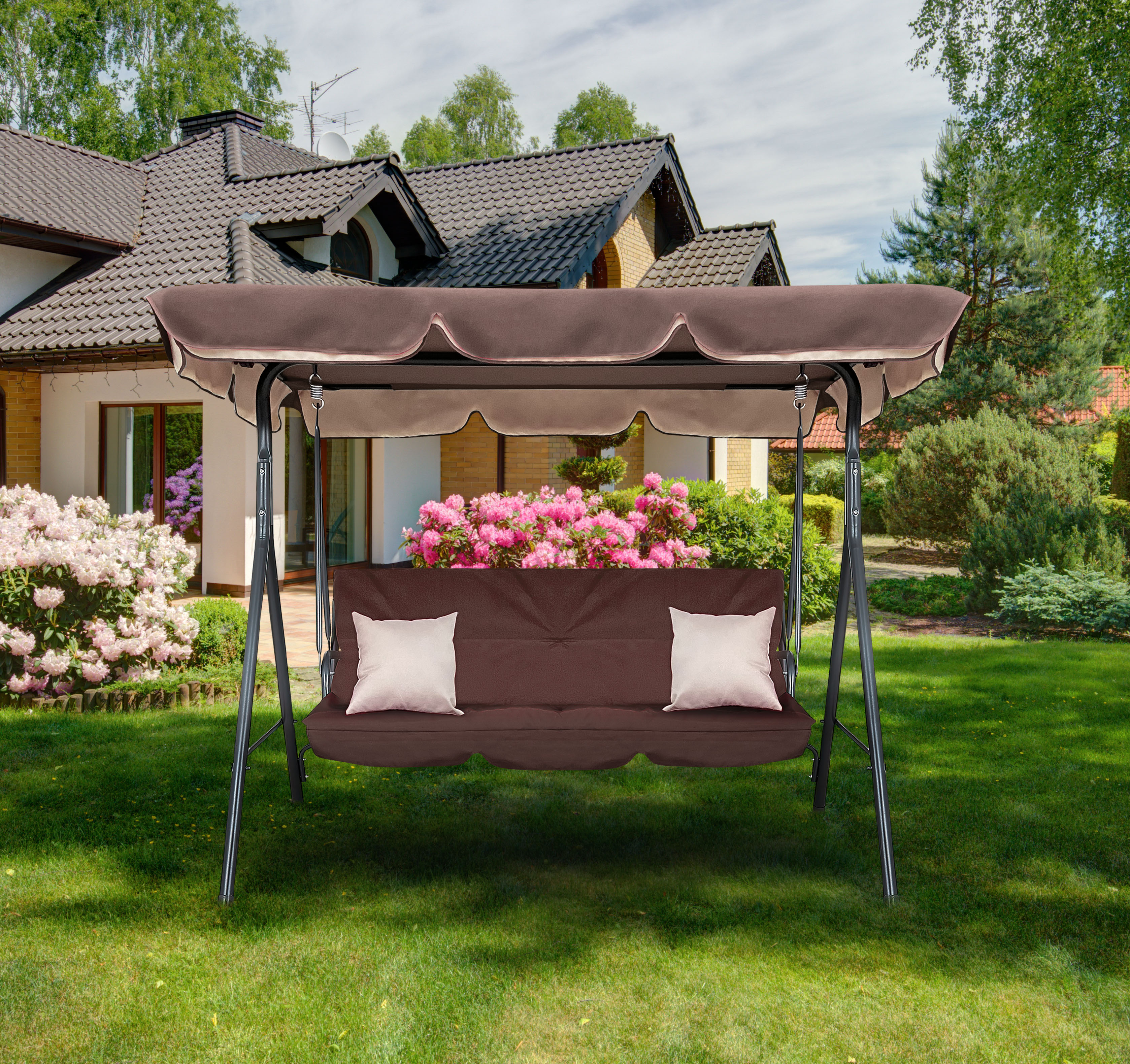 Zahradní houpačka MAJKA v moderním designu, vhodná pro venkovní využití na zahrady, terasy, balkóny či pláže.
