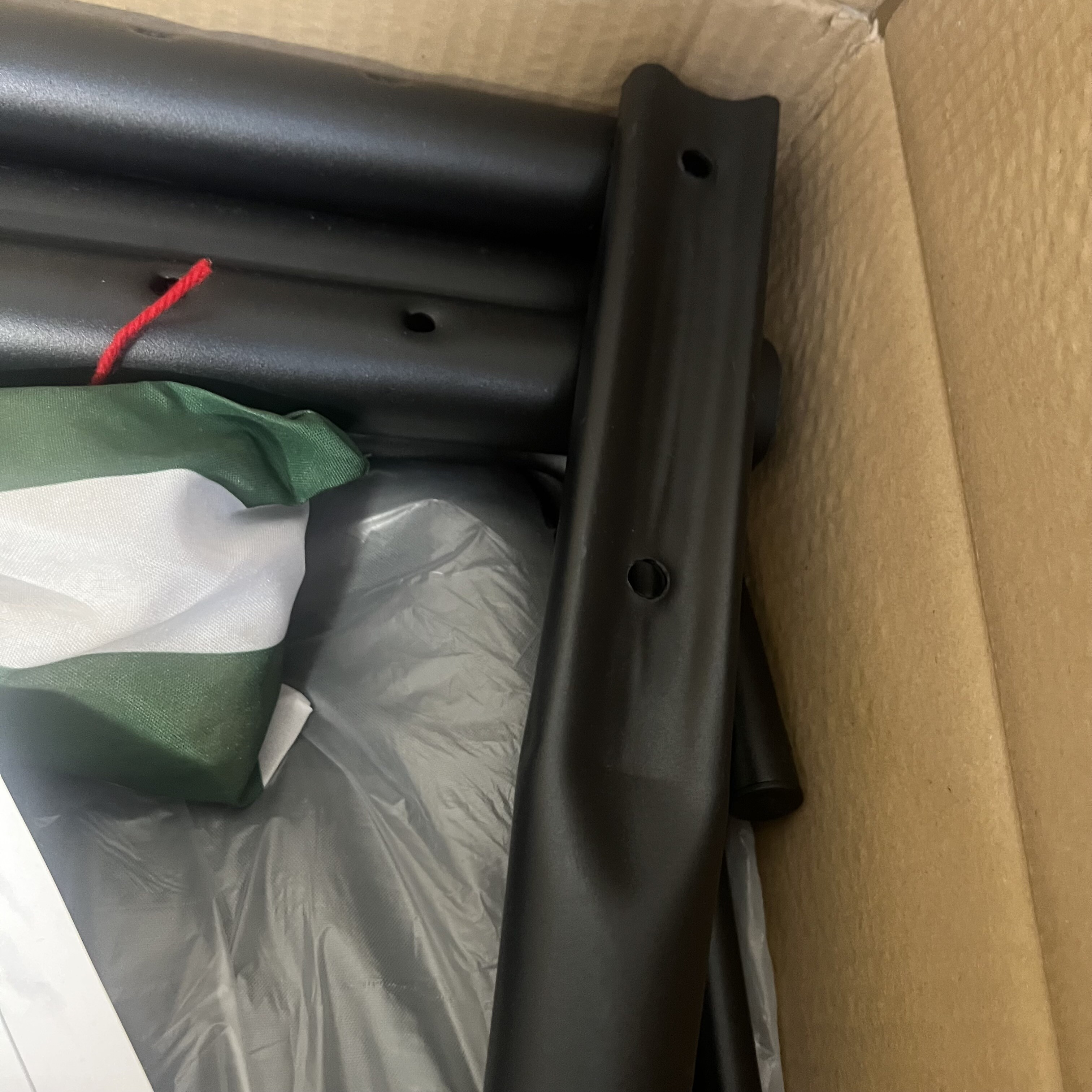 Houpačka byla smontovaná a rám je jen mírně poškrábaný.