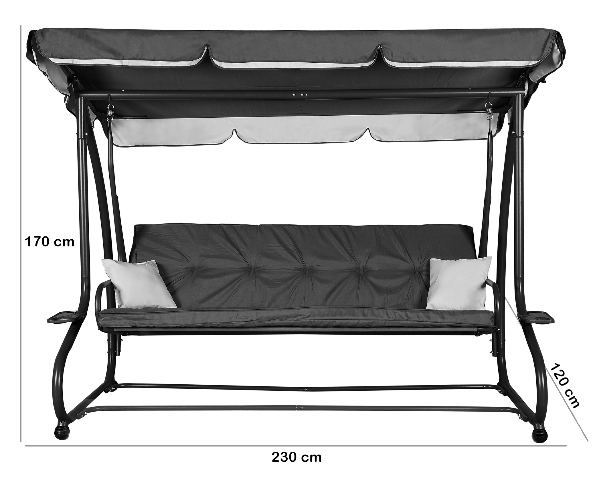 Houpačka je dostatečně prostorná a pohodlná pro 3 až 4 osoby a lze ji velice snadno změnit sklopením opěradla na pohodlné lehátko. Gumové protiskluzové patky na masivních nohách, zaručují potřebnou stabilitu.