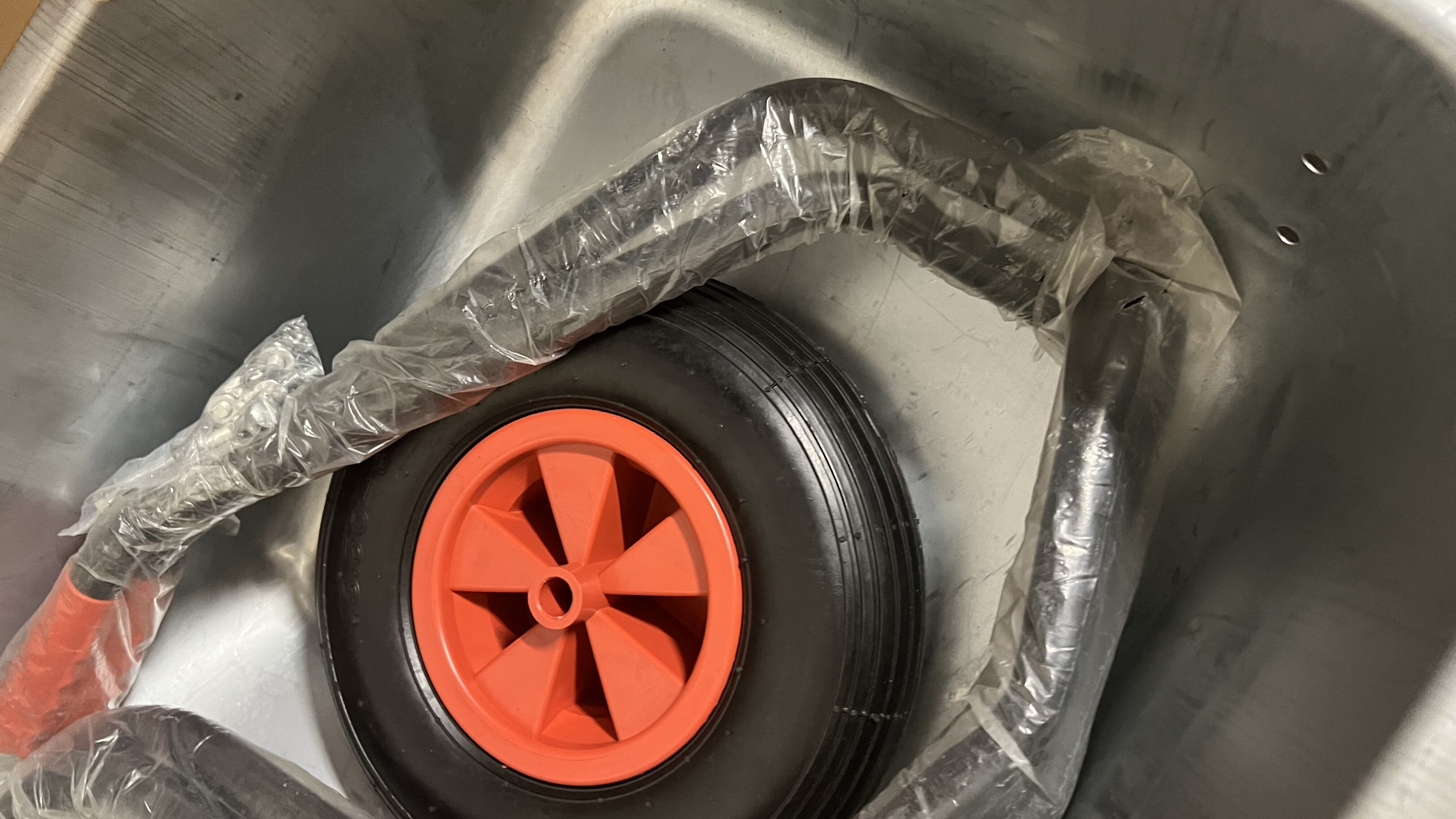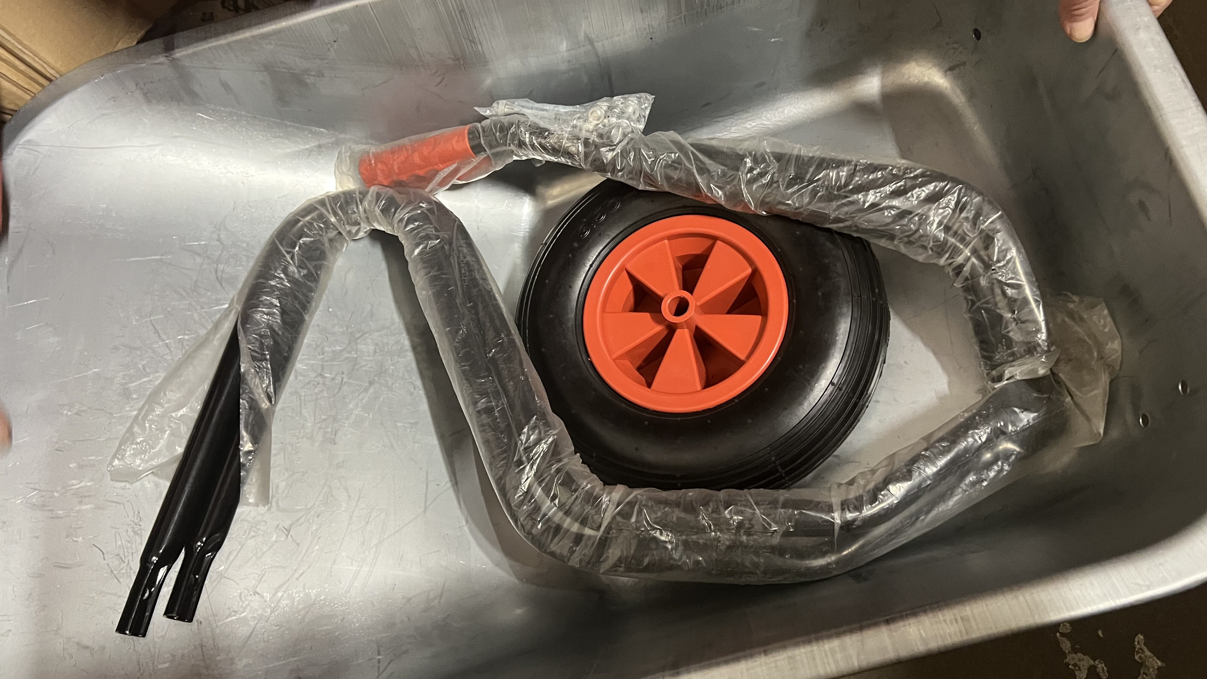 Zahradní kolečko je plně funkční, zařazené do kategorie 2. jakosti z důvodu poškrábání.