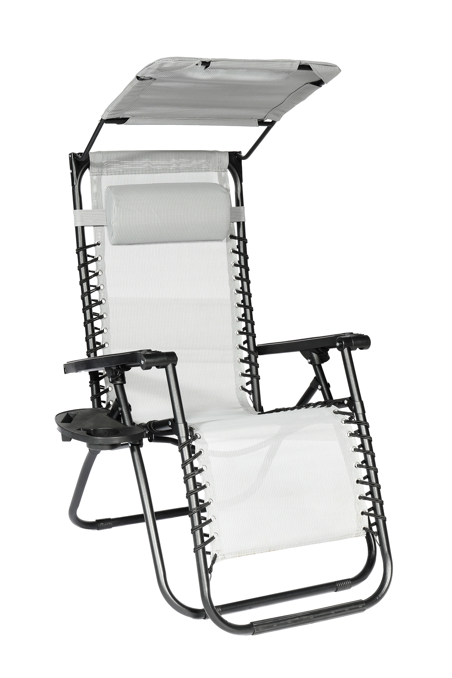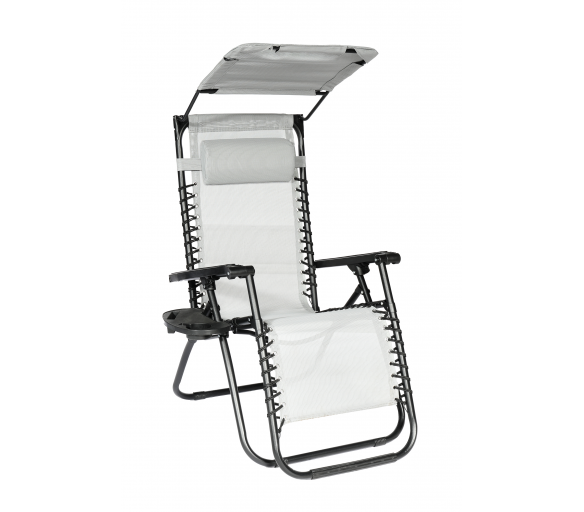 Na křesle lze odpočívat i při ostrém sluníčku, neboť zabudovaná stříška Váš obličej dokonale ochrání před prudkým sluncem.