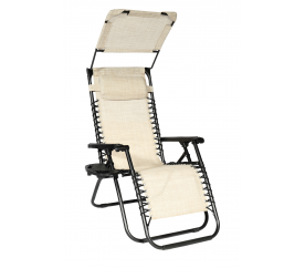 Na křesle lze odpočívat i při ostrém sluníčku, neboť zabudovaná stříška Váš obličej dokonale ochrání před prudkým sluncem.