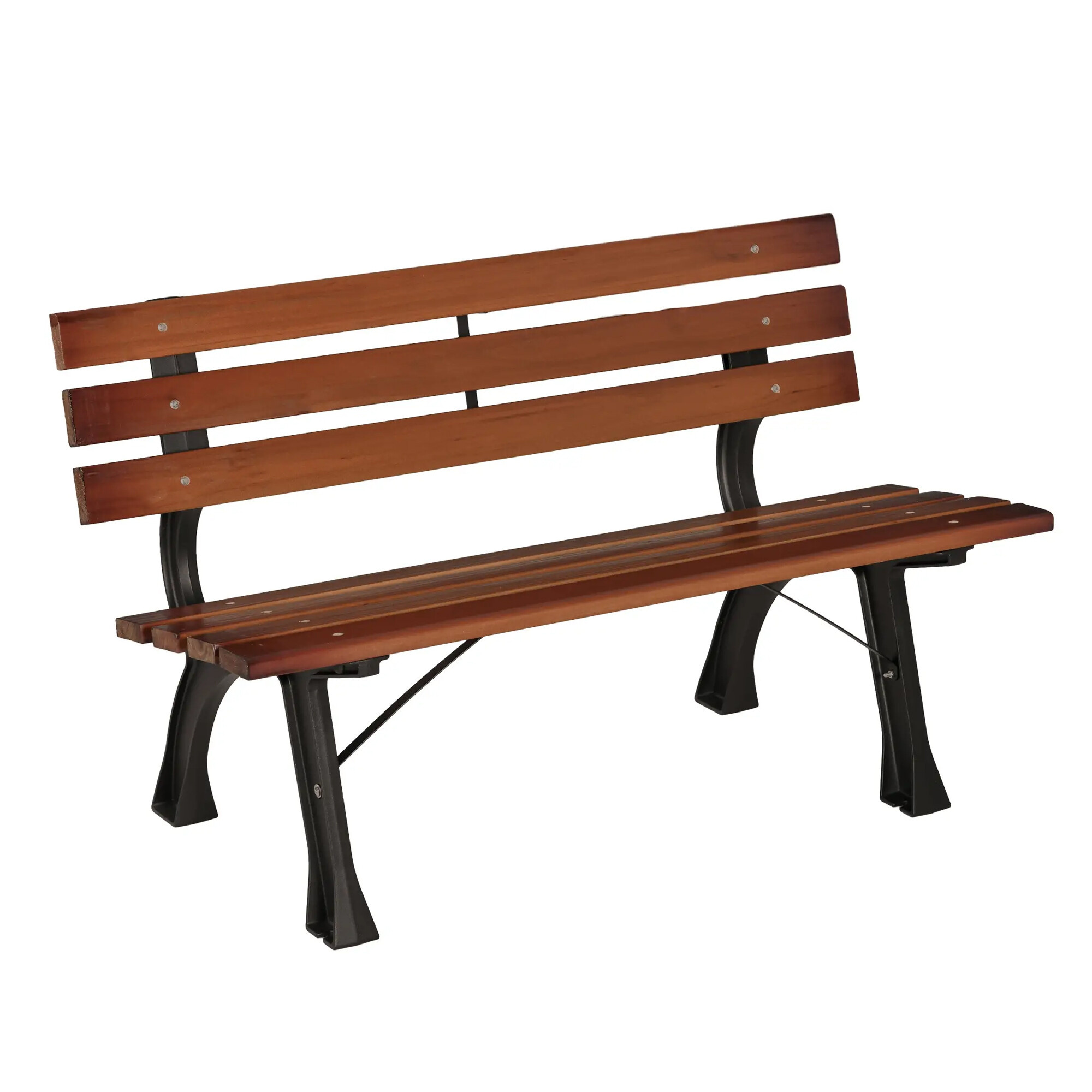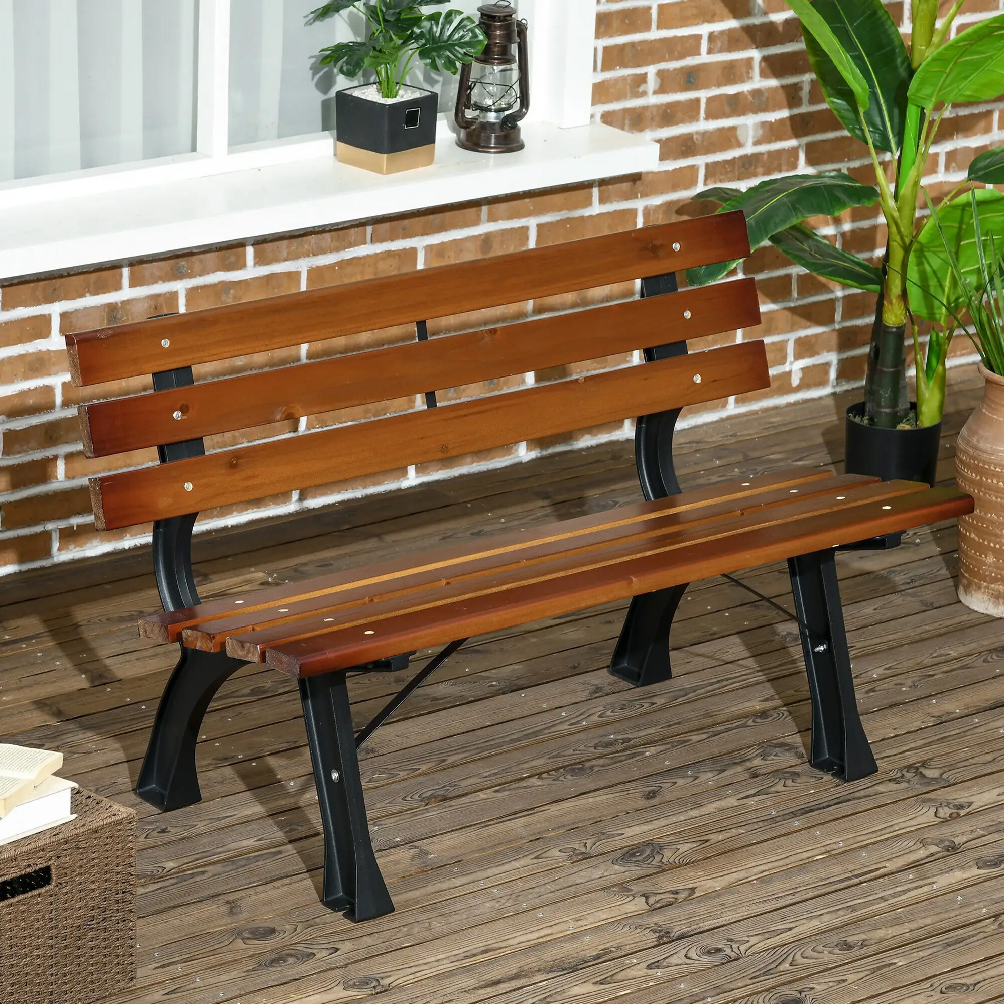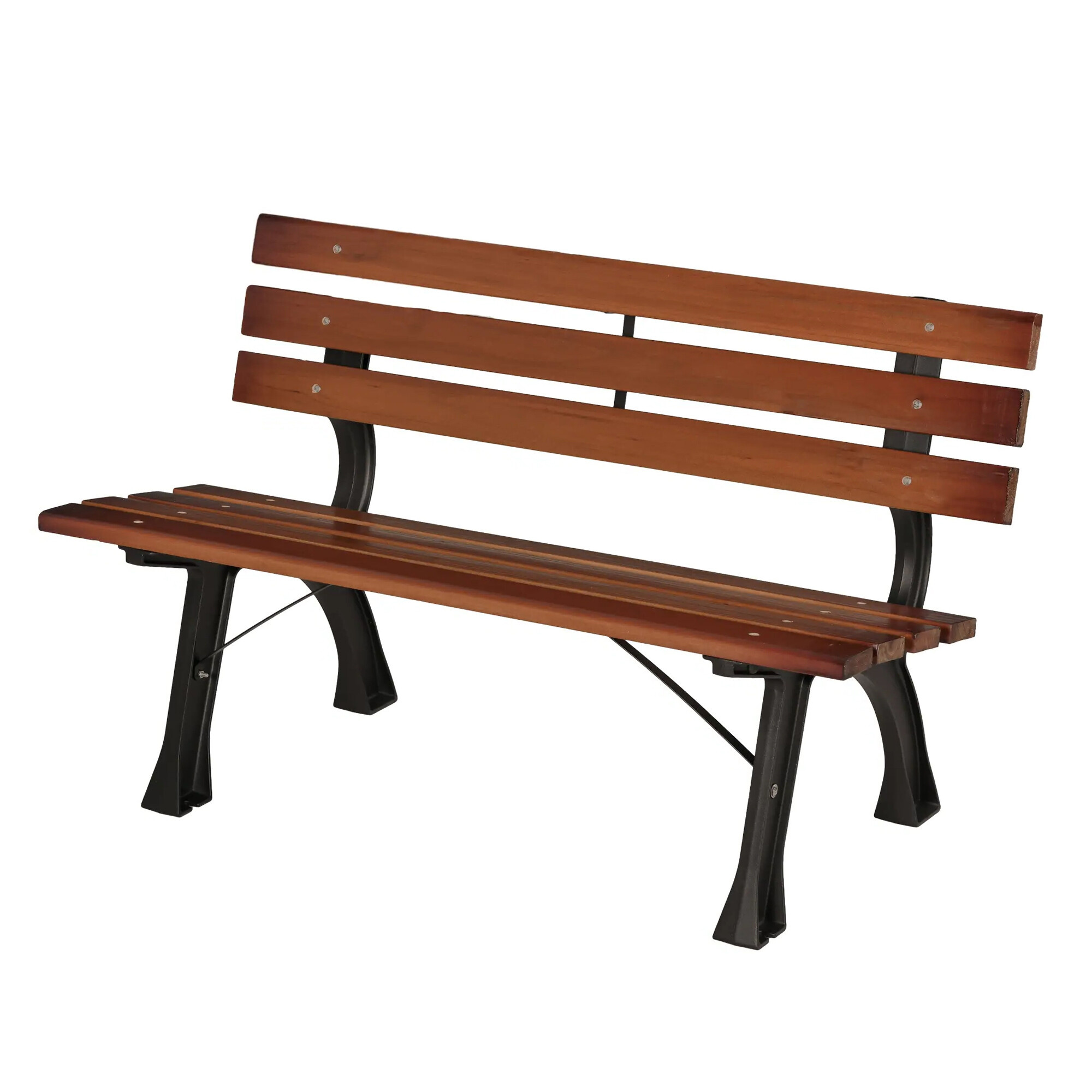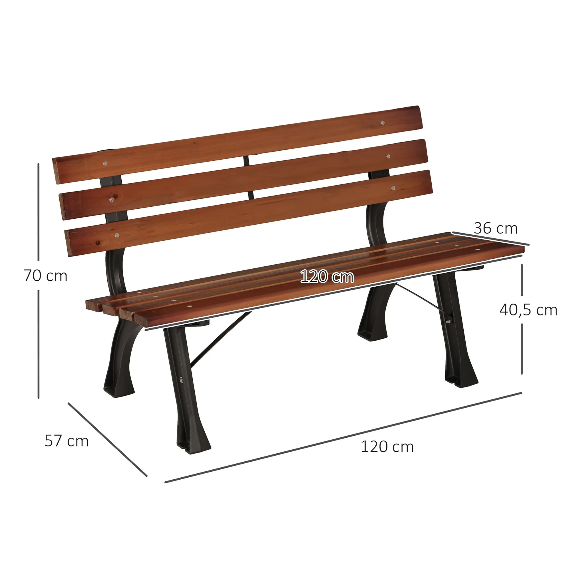 Pevná litinová konstrukce, která je doplněna o dřevěné latě. Nosnost lavice 240 kg.