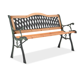 Pevná ocelová konstrukce, která je doplněna o dřevěné latě. Nosnost lavice 240 kg.