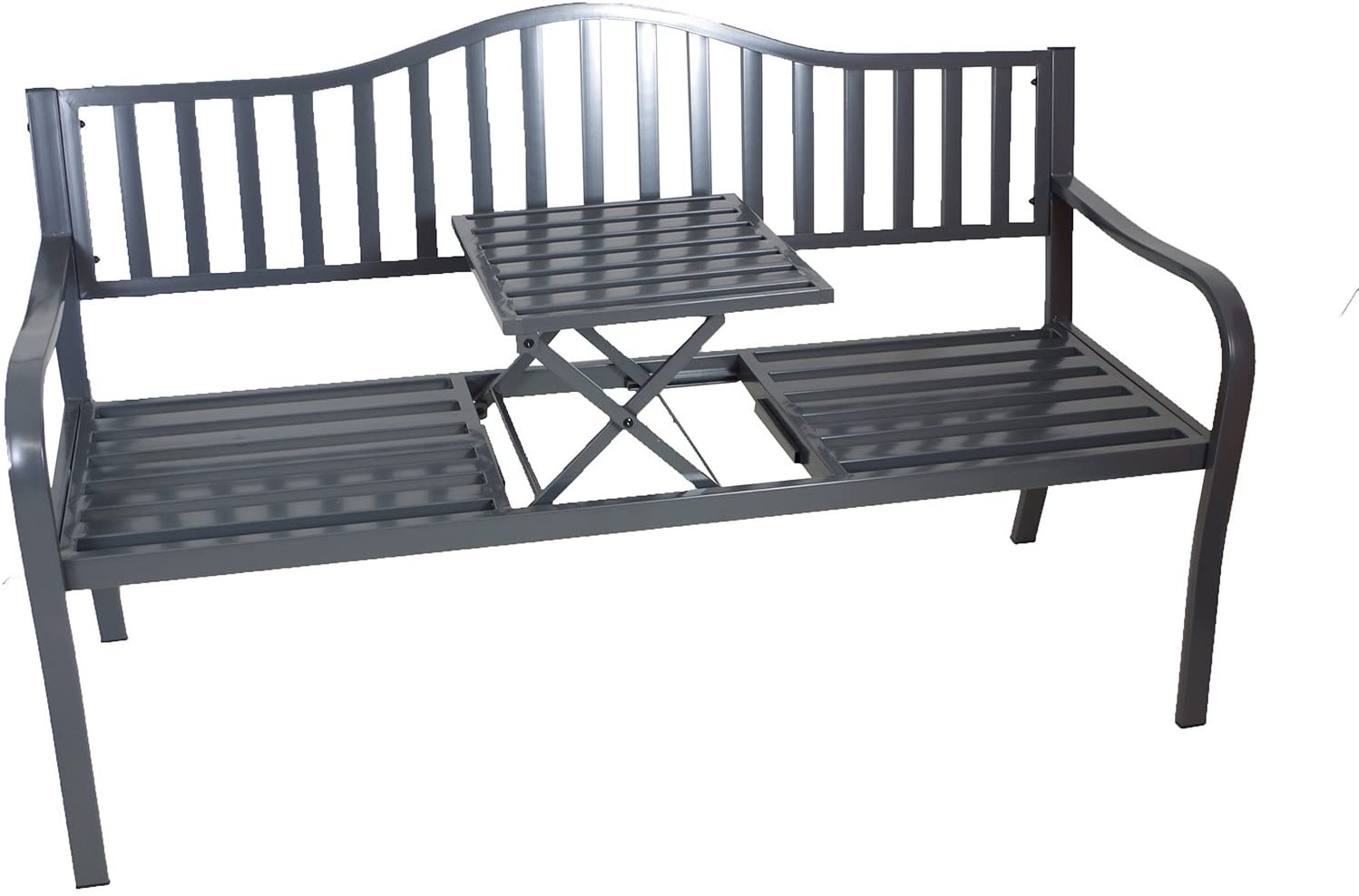 Už nikdy nebudete muset držet jídlo a pití v ruce, ale nyní je můžete pohodlně umístit na rozkládací stůl uprostřed této kovové lavice.