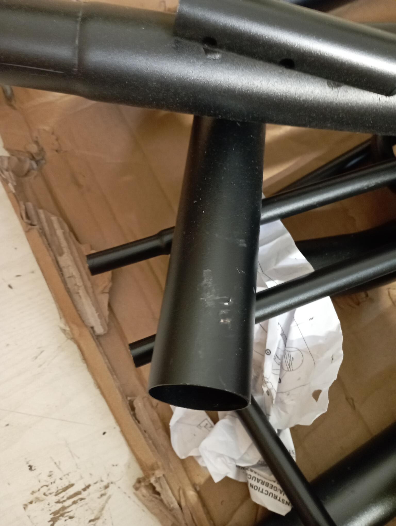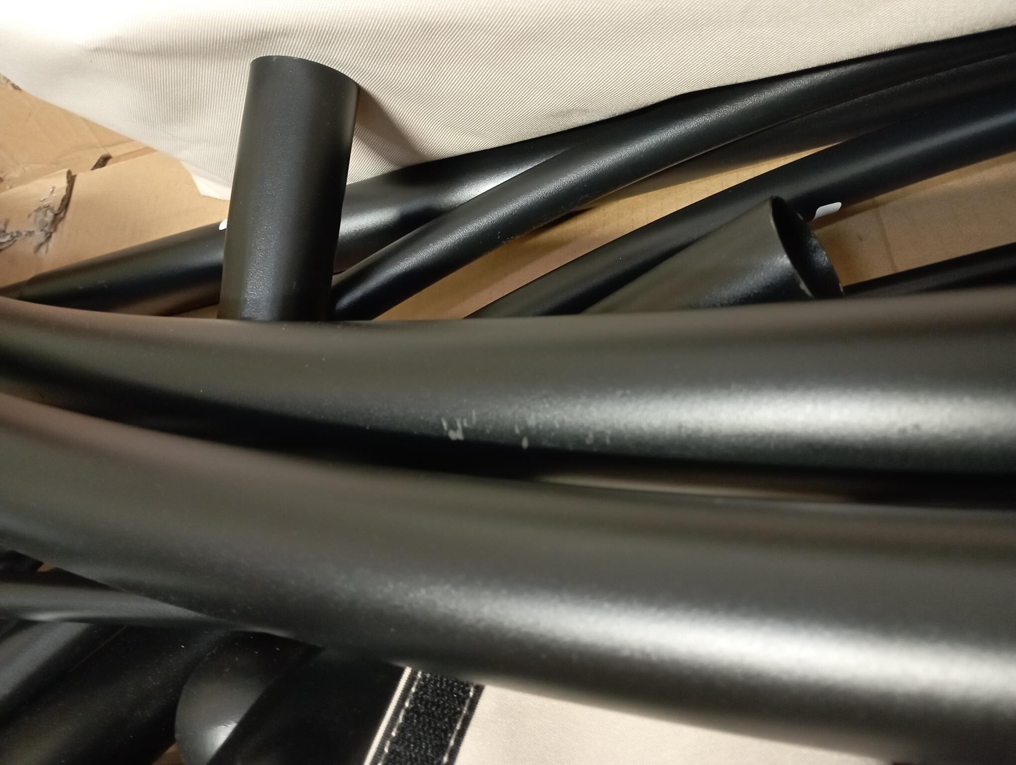 Houpačka je plně funkční a kompletní. Konstrukce má drobné oděrky a potah je mírně zaprášený z uskladnění. Tyto kosmetické vady nemají žádný vliv na bezpečnost ani funkčnost houpačky.