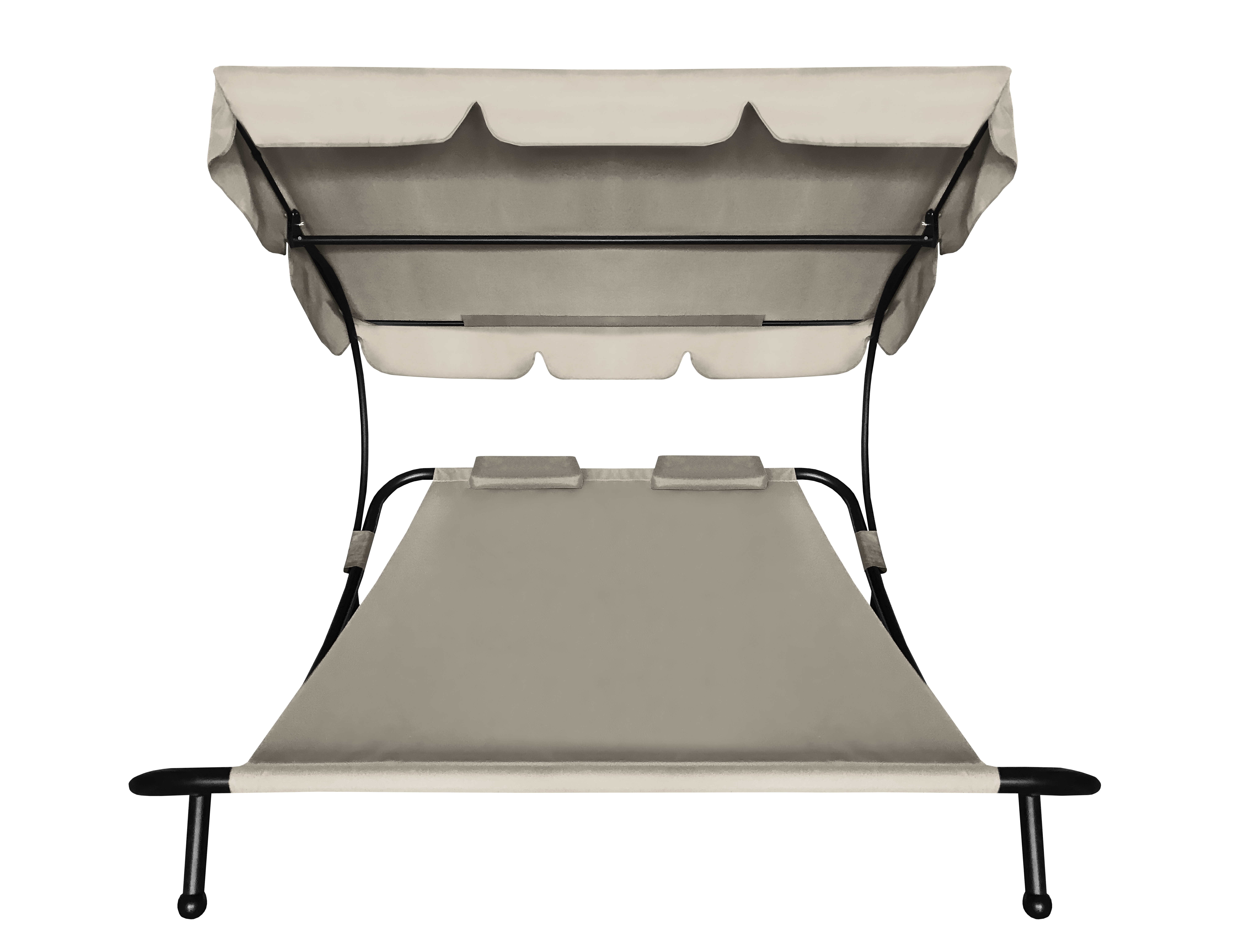 Dvojité lehátko je vyrobené z kvalitní oxfordské látky, která skvěle odolává vlivům počasí. Naklápěcí stínící stříška Vás ochrání před sluncem.
