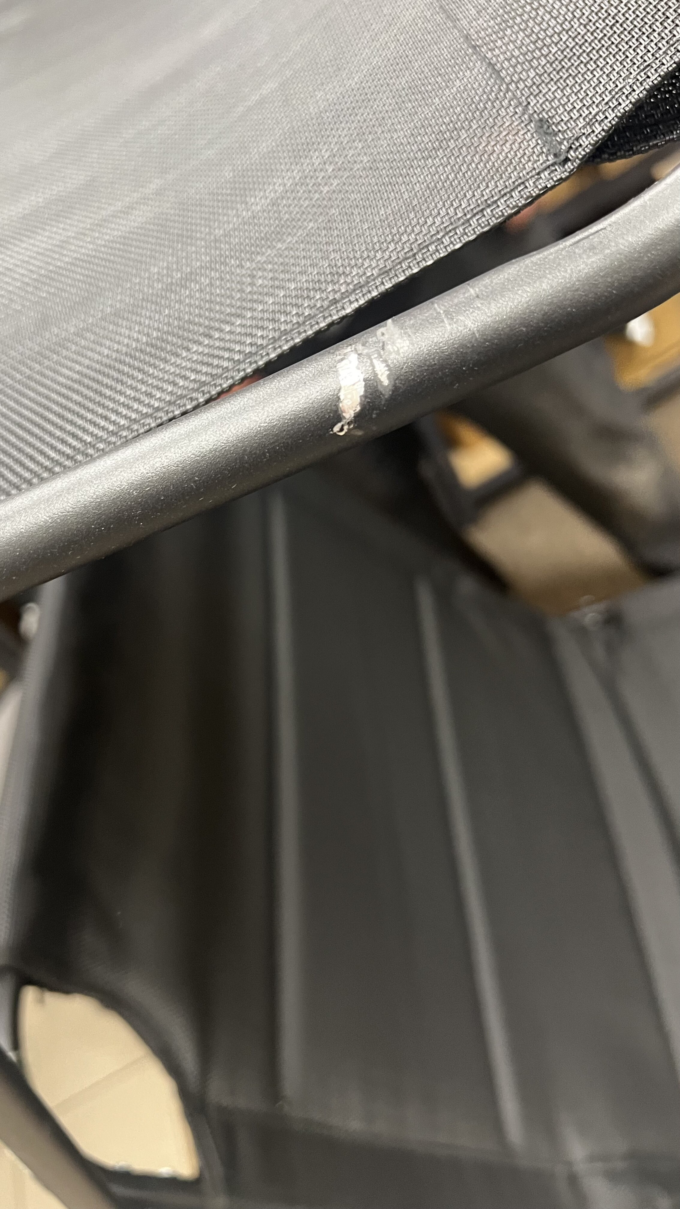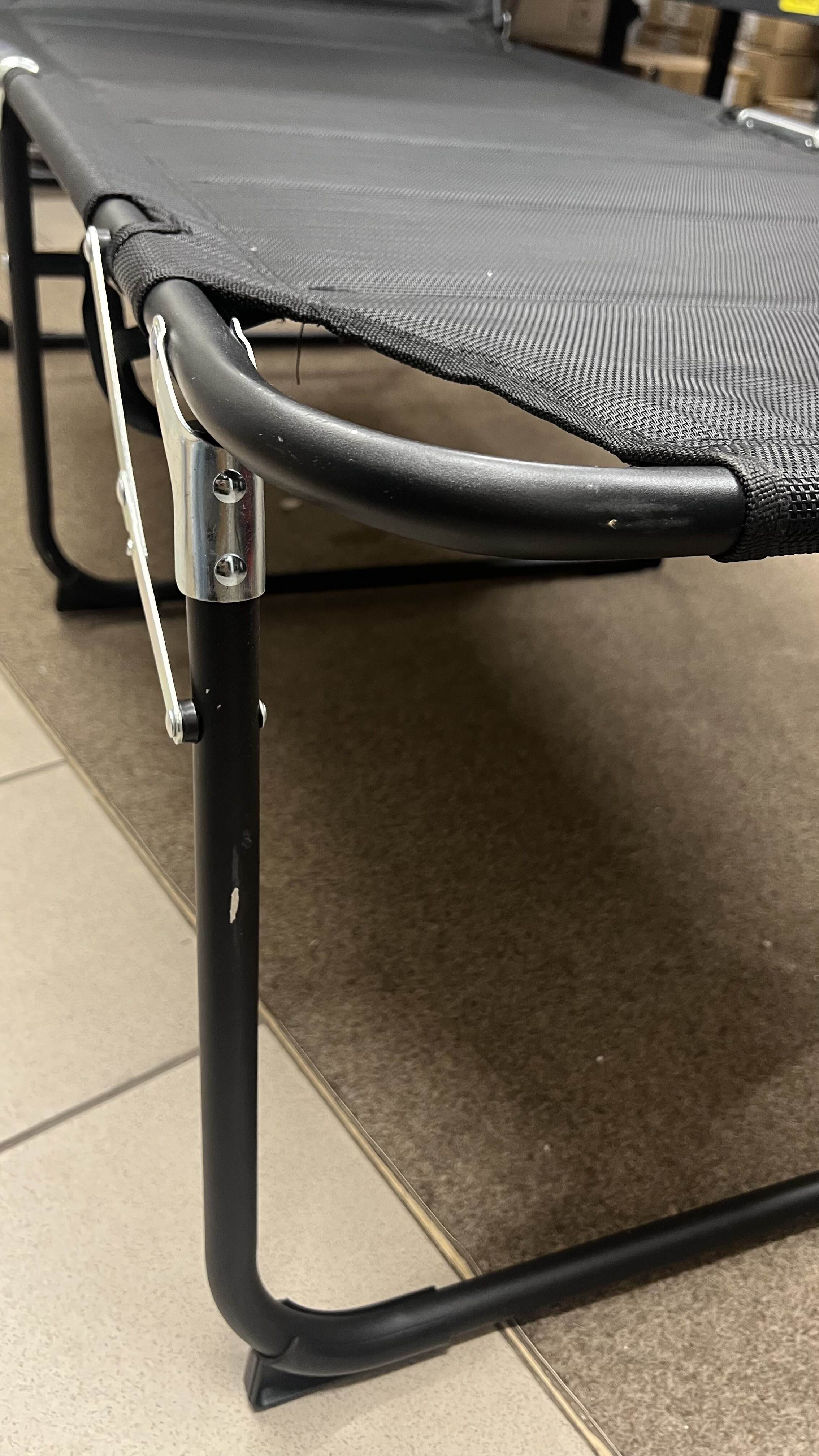 Rám lehátka je místy poškrábaný, výrobek může být lehce zaprášený a bez původního obalu.