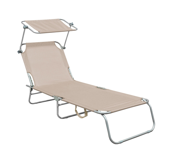 Skládací zahradní lehátko se zpevněnou ocelovou konstrukcí, v moderním designu, vhodné pro zahrady, na kempování či pláže.