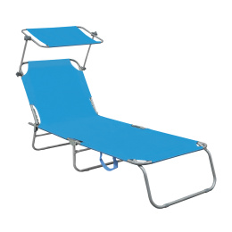Popis produktu Aga Zahradní polohovací lehátko se stříškou ModréLehátko mírně odřeno a má dírku - viz foto Specifikace Aga zahradního lehátka se stříškou Aga. Vlastnosti a funkce: Stabilní a odolná ocelová konstrukce Odolné vůči povětrnostním a klimatickým vlivům 4 polohy nastavení opěrky zad Prodyšný potah nesající vodu (polyester), nenáročný na údržbu Lehátko se dá velmi snadno a rychle složit, nenáročné na skladování Nastavitelná sluneční clona Parametry: Materiál potahu: 600D Oxford tkanina Konstrukce: Ocel Maximální nosnost: 120 kg Hmotnost cca: 5,5 kg Šířka lehátka: 55 cm Délka lehátka: 187 cm Výška lehátka: 24 cm Rozměry stříšky: 55 x 36 cm