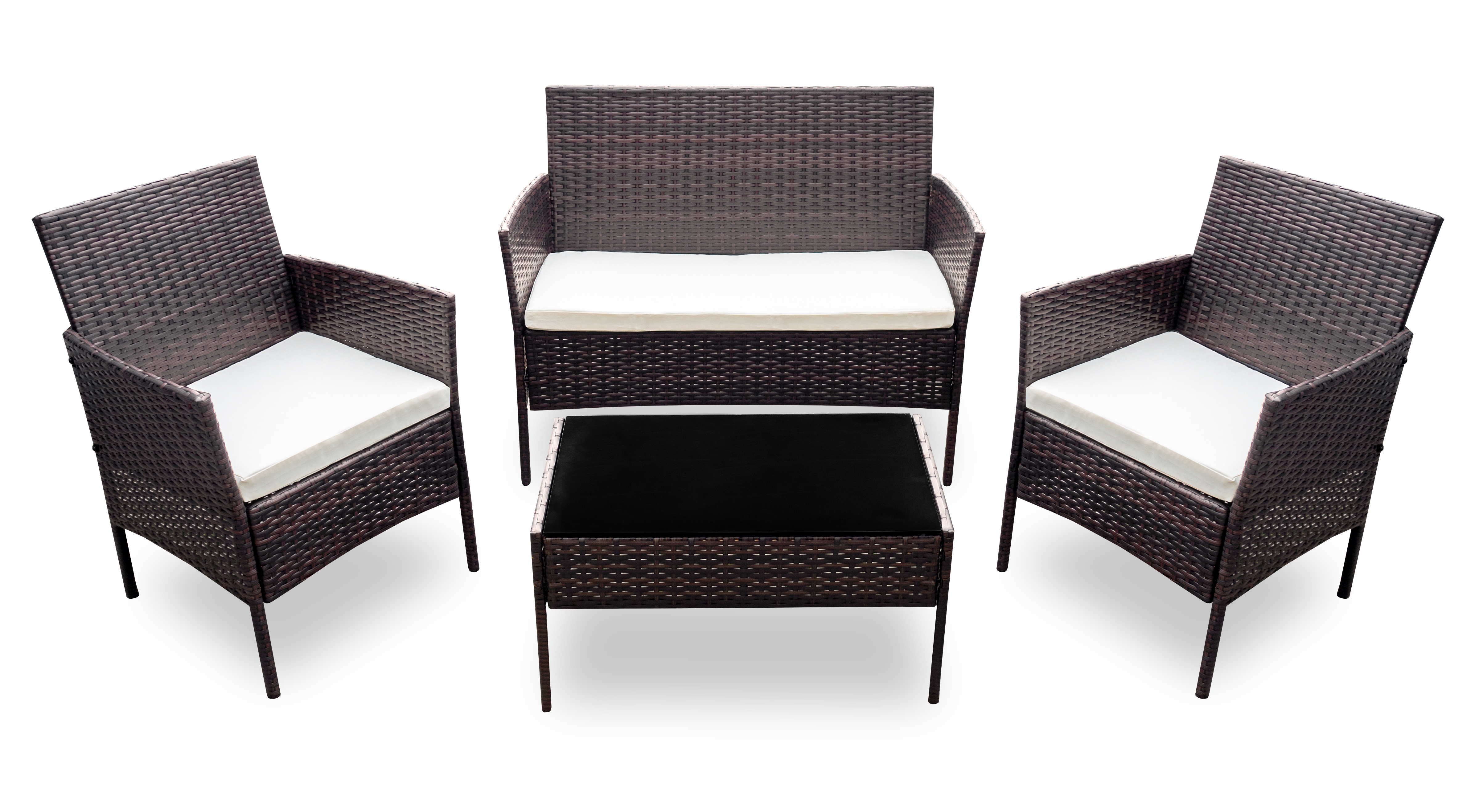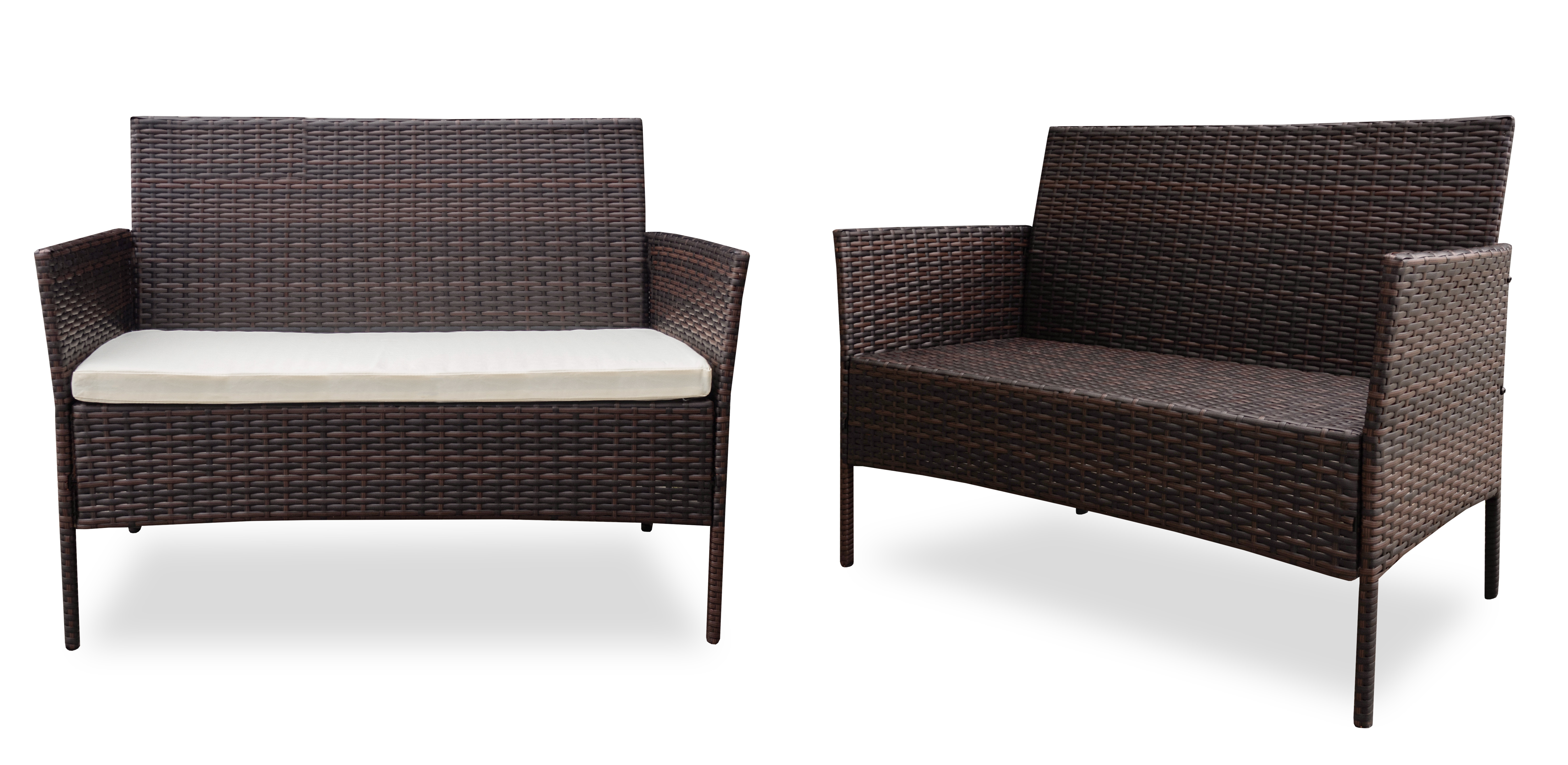 Stabilní kovová konstrukce s opletem z kvalitního umělého ratanu v hnědé barvě. Pohodlné odnímatelné polštářky o tloušťce 5 cm poskytují potřebný komfort během sezení.
