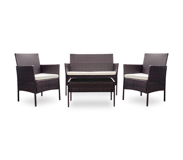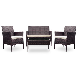 Stabilní kovová konstrukce s opletem z kvalitního umělého ratanu v hnědé barvě. Pohodlné odnímatelné polštářky o tloušťce 5 cm poskytují potřebný komfort během sezení.