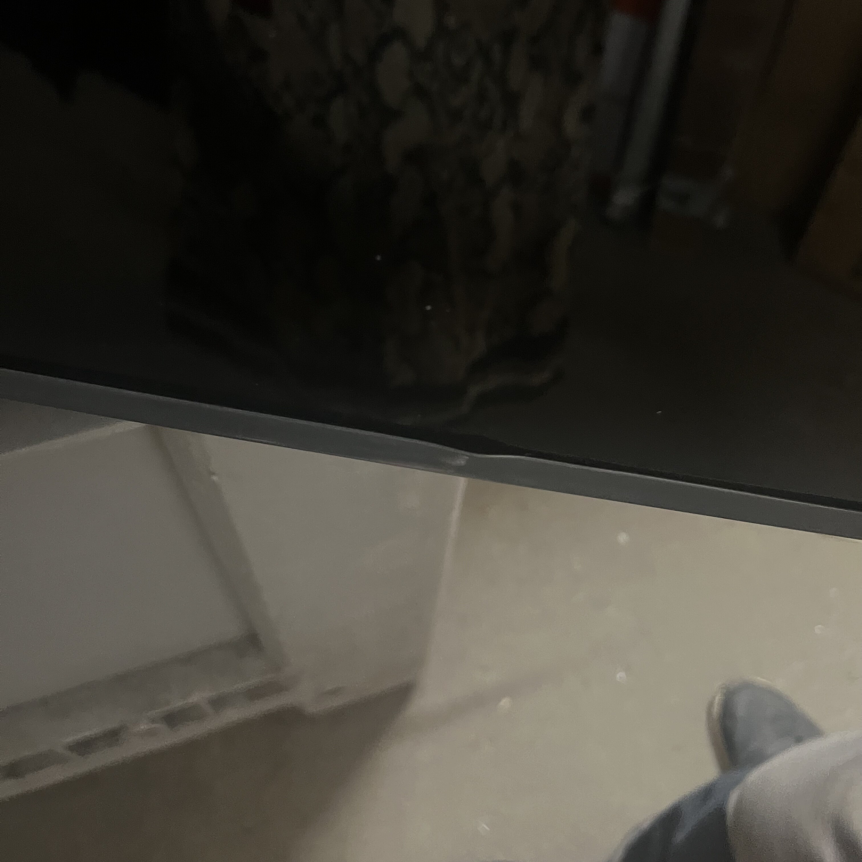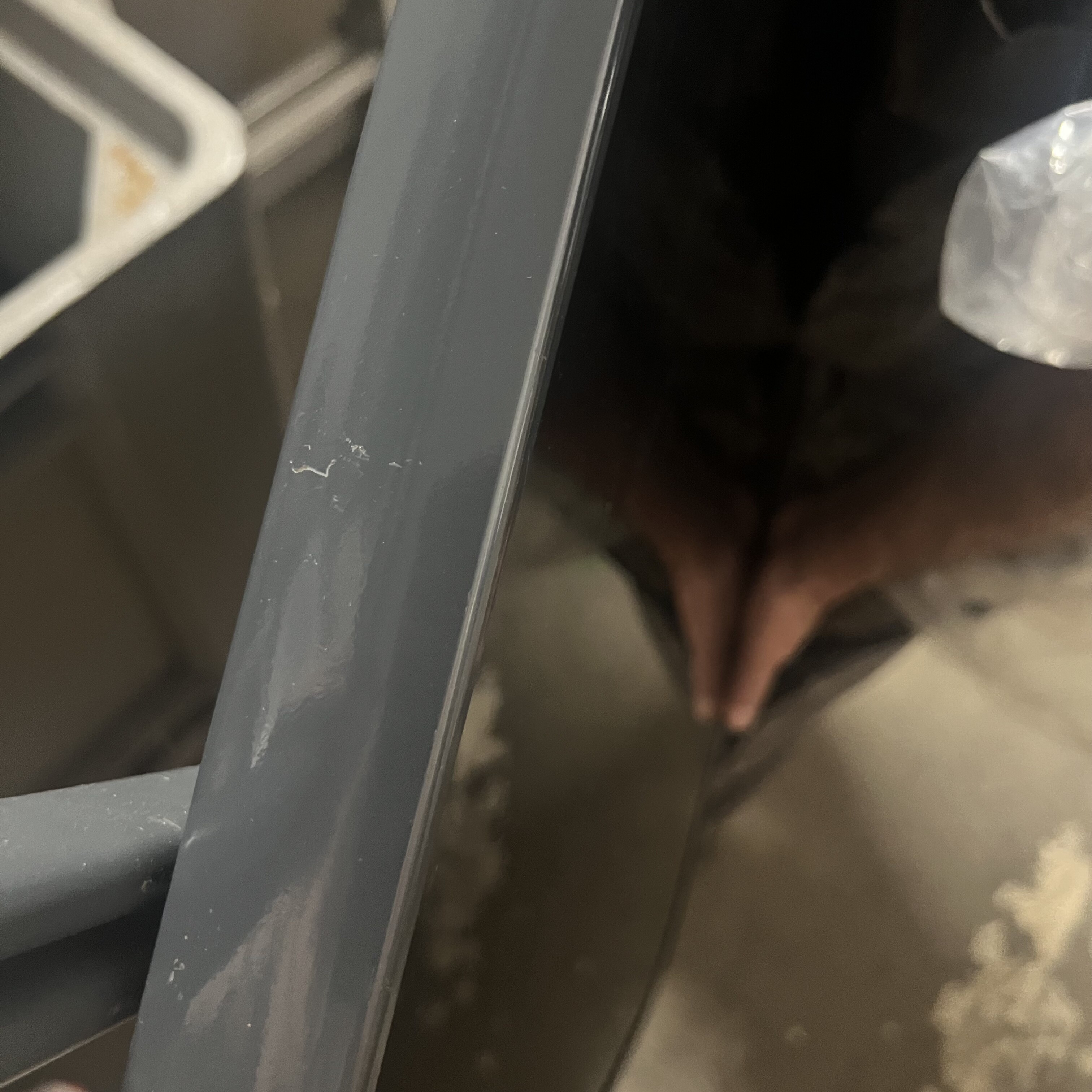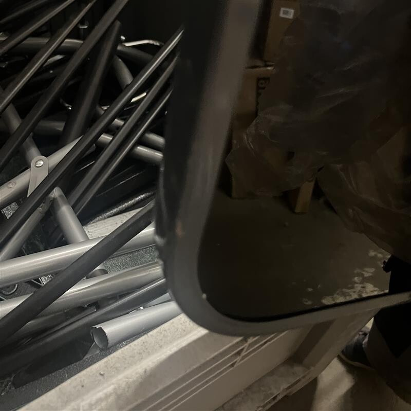 Stůl má poškození (nerovnosti) na rámu a pár škrábanců.