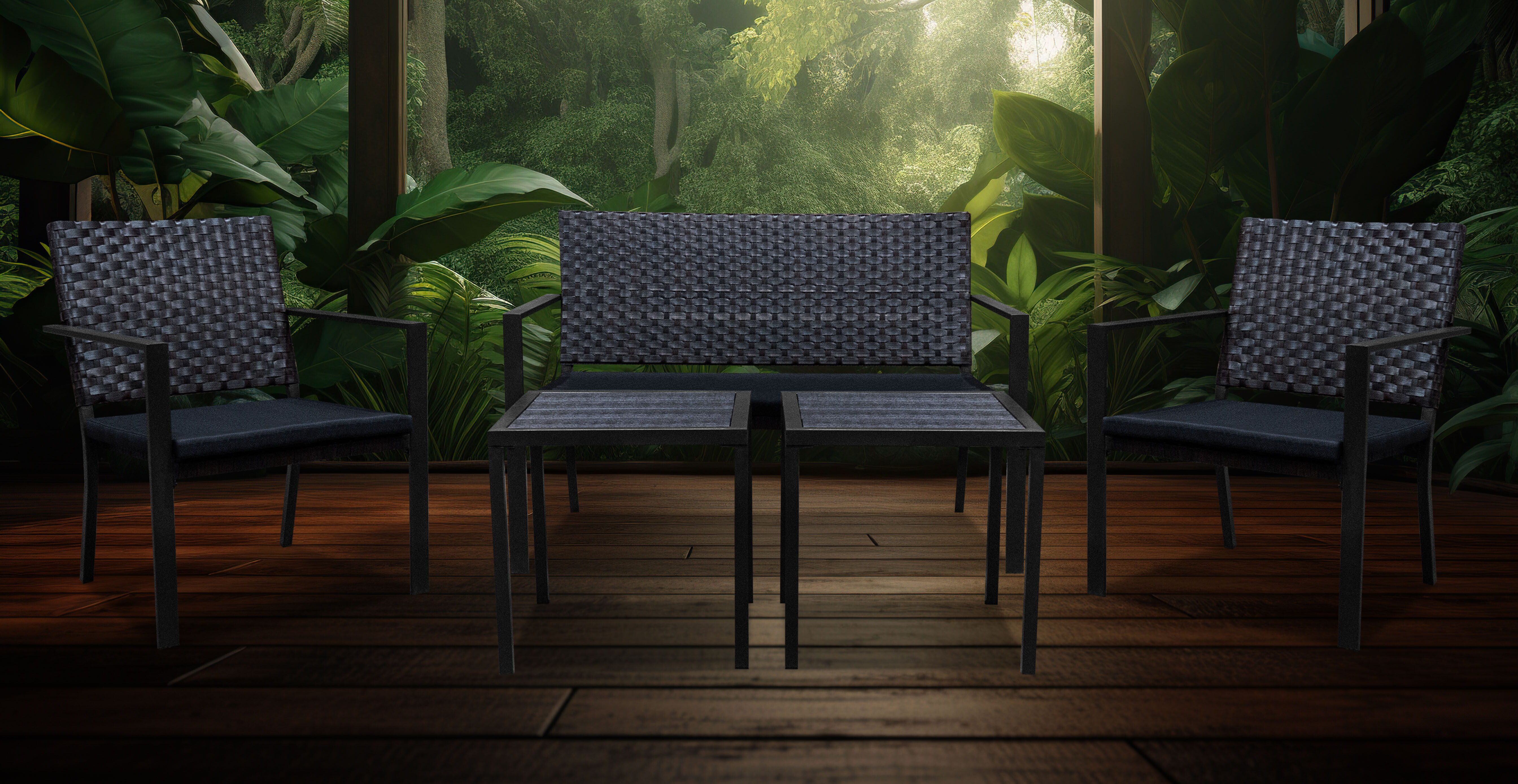 Ratanový vzhled setu oživí vaši zahradu přírodním kouzlem.