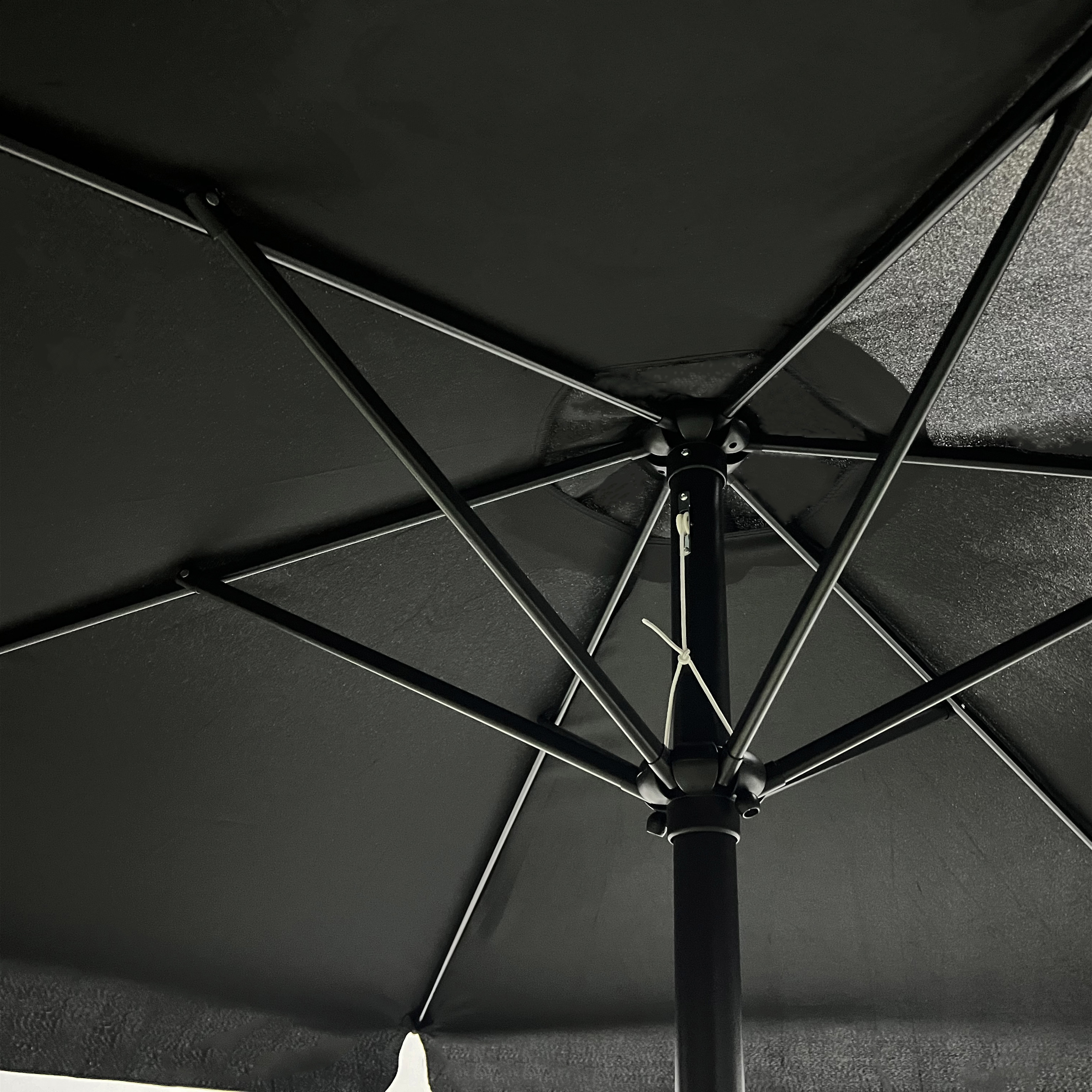 Konstrukce slunečníku je vyrobena z kvalitního hliníku, který vyniká svou pevností a zároveň nízkou hmotností. Oproti klasické oceli je hliníkový slunečník odolnější vůči korozi, což z něj činí ideální řešení pro dlouhodobé venkovní použití. Stabilitu celé konstrukce zajišťuje robustní středová tyč o průměru 48 mm spolu s pevnými žebry, díky nimž slunečník drží tvar a odolává běžným povětrnostním podmínkám.