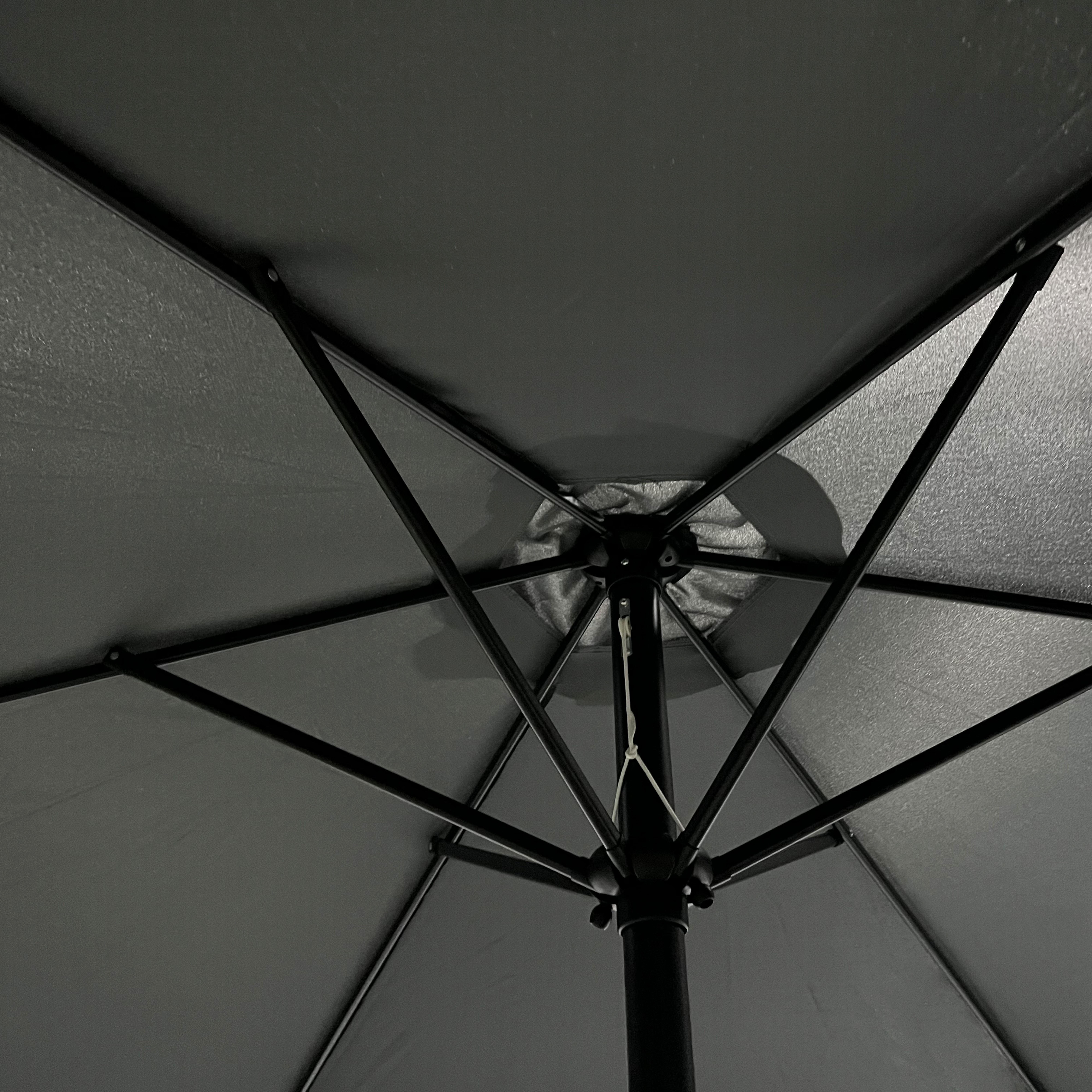 Konstrukce slunečníku je vyrobena z kvalitního hliníku, který vyniká svou pevností a zároveň nízkou hmotností. Oproti klasické oceli je hliníkový slunečník odolnější vůči korozi, což z něj činí ideální řešení pro dlouhodobé venkovní použití. Stabilitu celé konstrukce zajišťuje robustní středová tyč o průměru 48 mm spolu s pevnými žebry, díky nimž slunečník drží tvar a odolává běžným povětrnostním podmínkám.