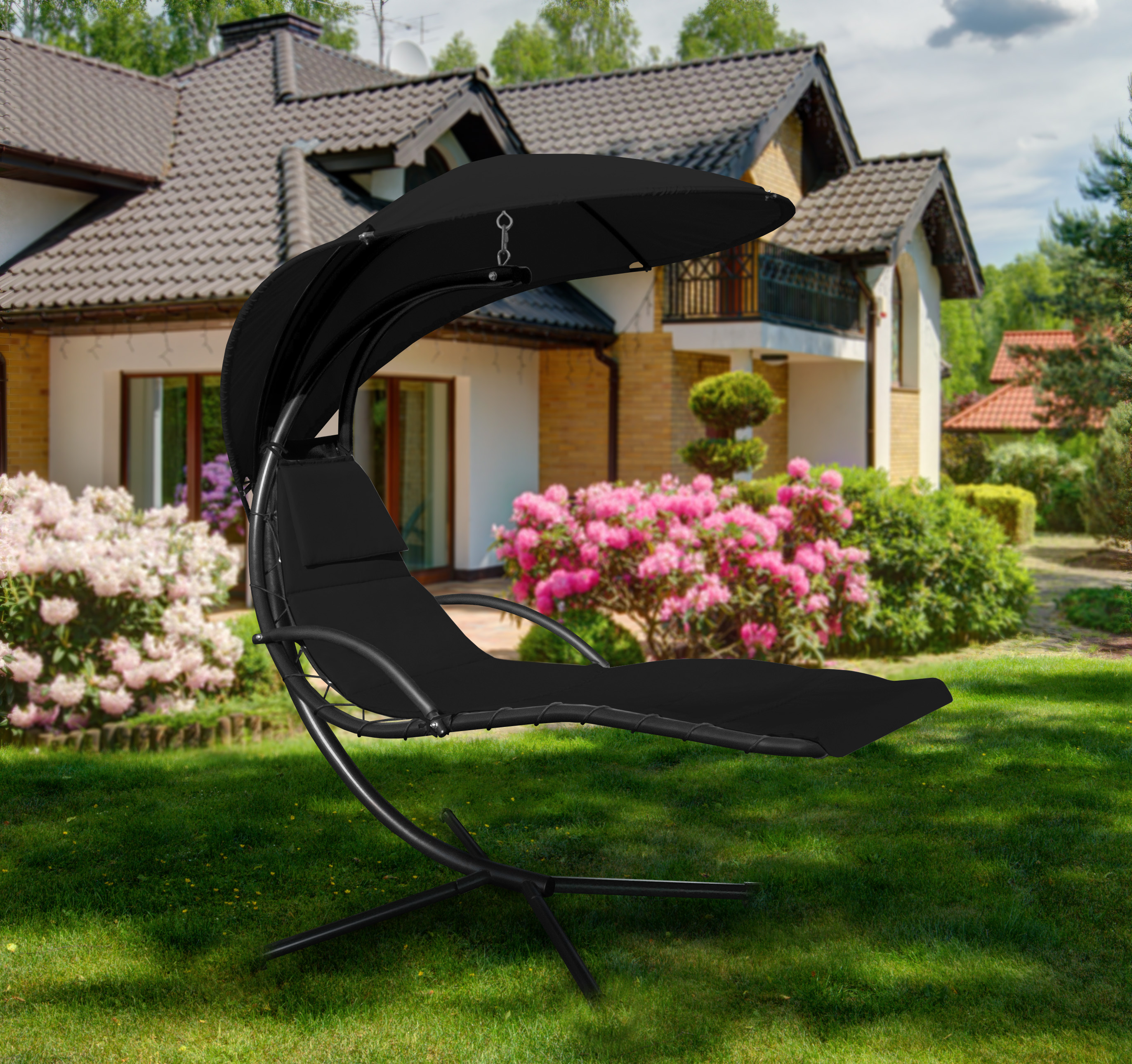Aga Zahradní závěsné lehátko se stříškou Černé