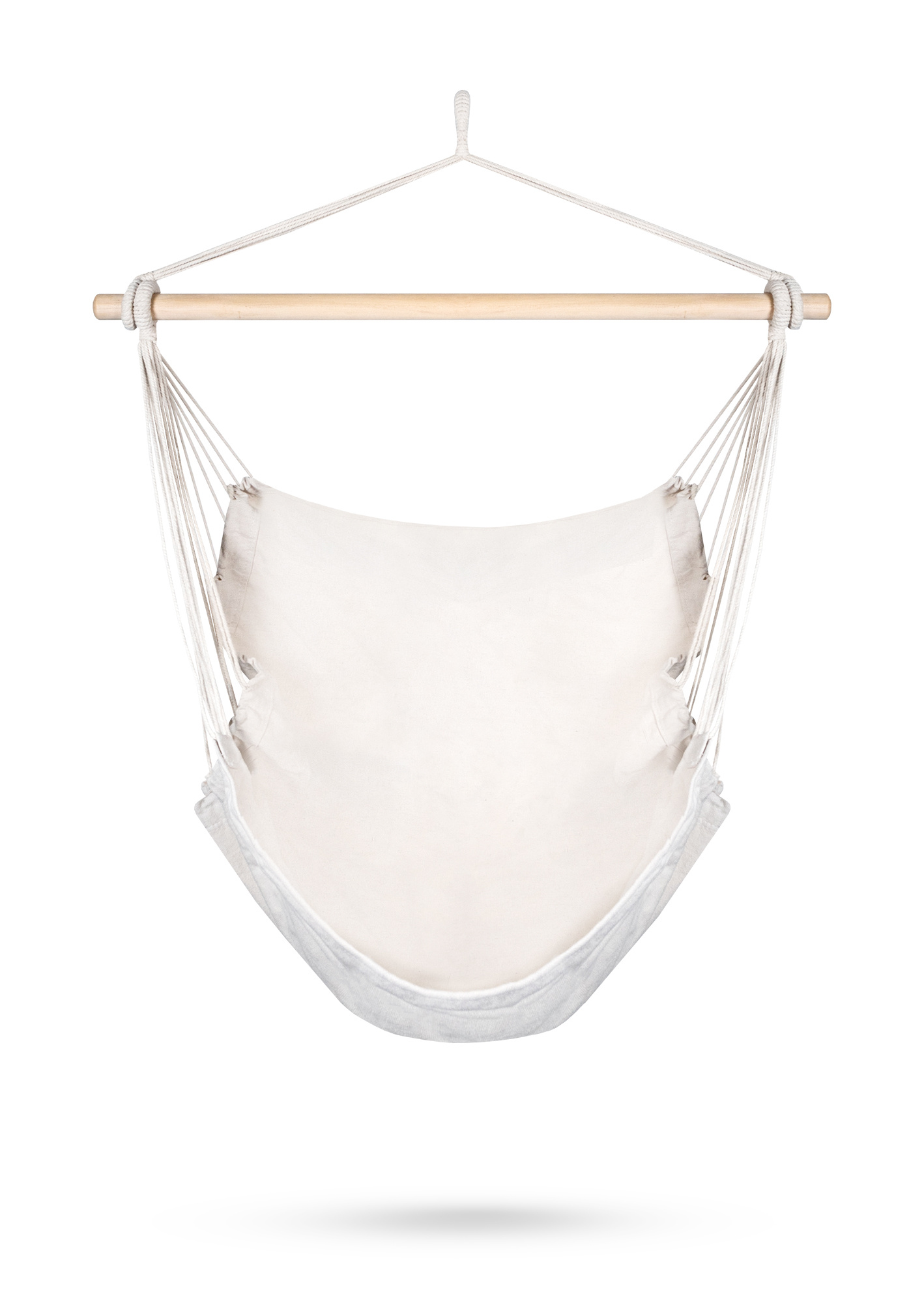 Houpací křeslo má dřevěnou příčku umožňuje pohodlné držení těla během odpočinku. Silná lana a masivní dřevo zajistí dostatečnou pevnost a nosnost až 110 kg.