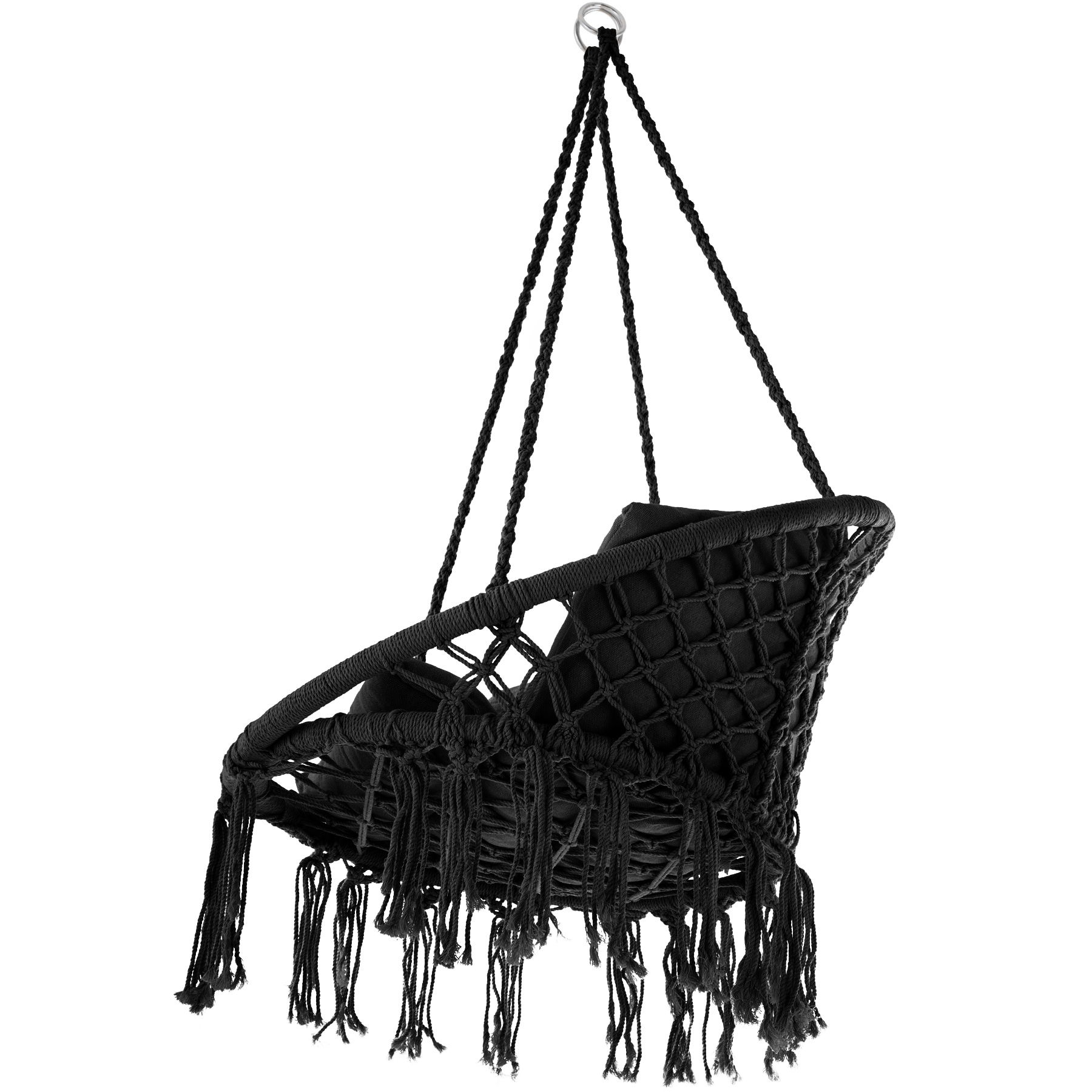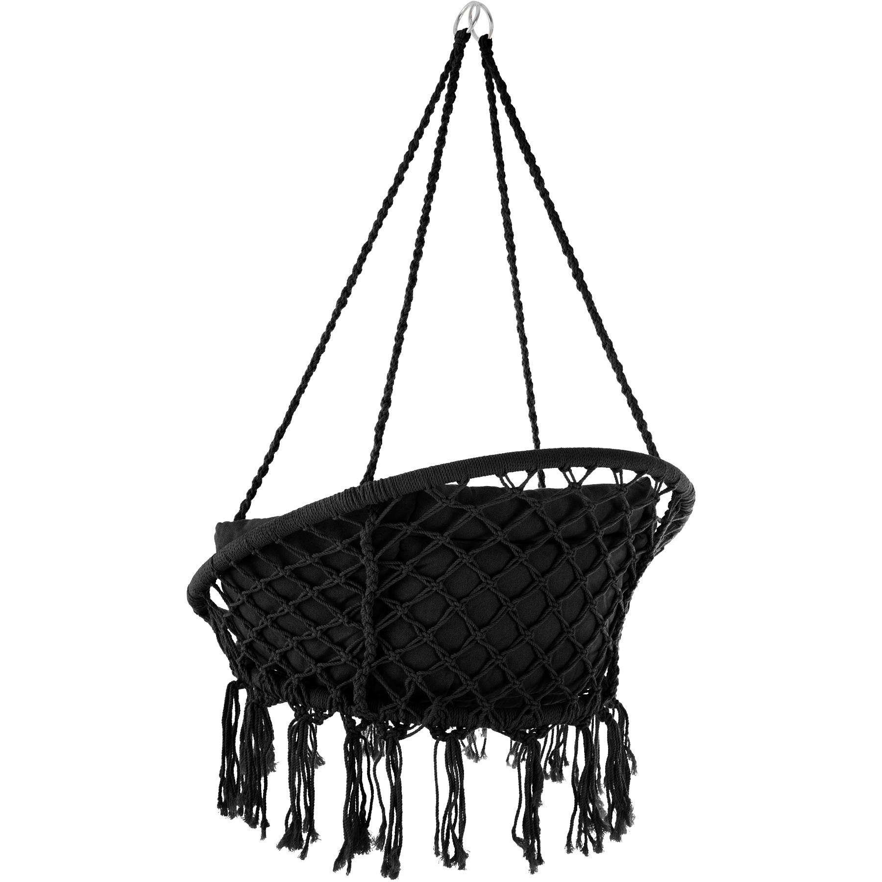 Závěsný koš v sobě spojuje komfort a nejnovějšími designovými trendy. Zajímavá konstrukce v kombinaci s uzlovými dekoracemi bez pochyby podtrhne design každého interiéru či exteriéru.